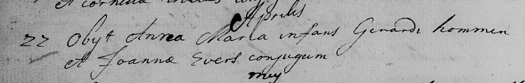 - Getuigen bij het huwelijk: Wilhelmus Evers, wellicht de zoon van zijn broer Matthias, en Joanna Evers