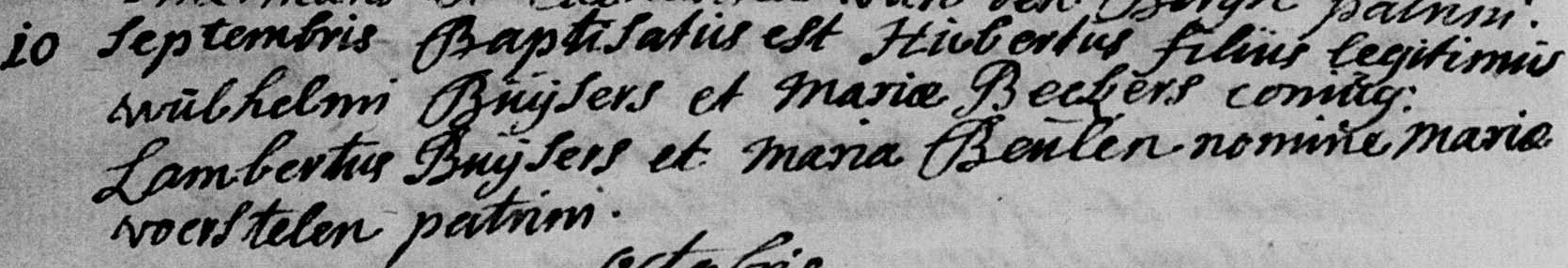 - Doopgetuigen: Leonardus Dillis (dat zou mogelijk Leonardus Everts kunnen zijn, de broer van de mogelijke moeder Odilia Everts) en Cornelia Beckers