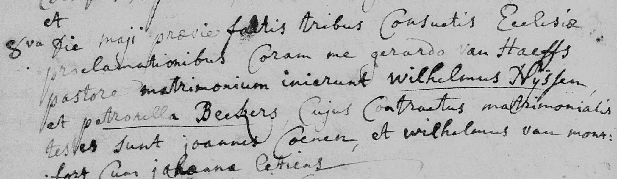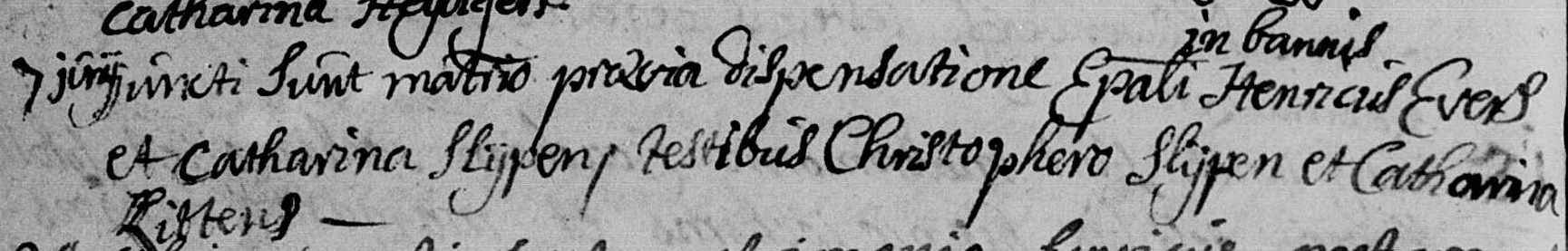 - Getuigen bij het huwelijk: Wilhelmus Evers, wellicht de zoon van zijn broer Matthias, en Joanna Evers