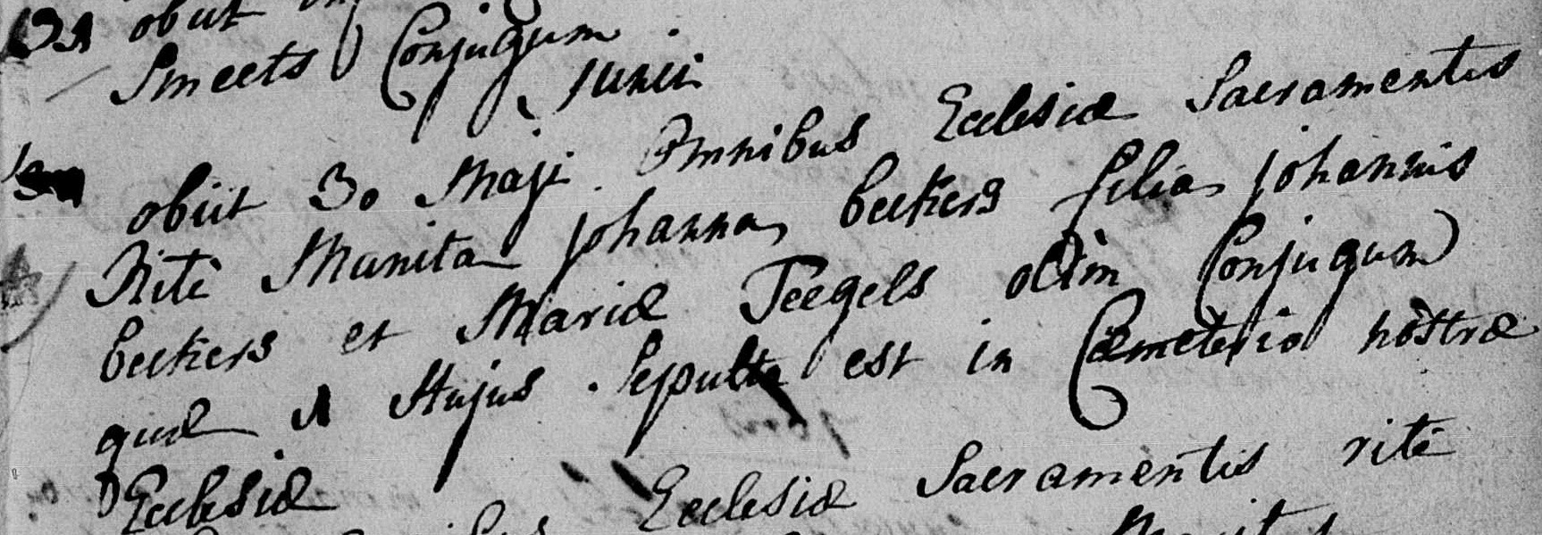- Joannes stierf wellicht ongehuwd, omdat bij zijn overlijden geen echtgenote vermeld is, maar wel de ouders.