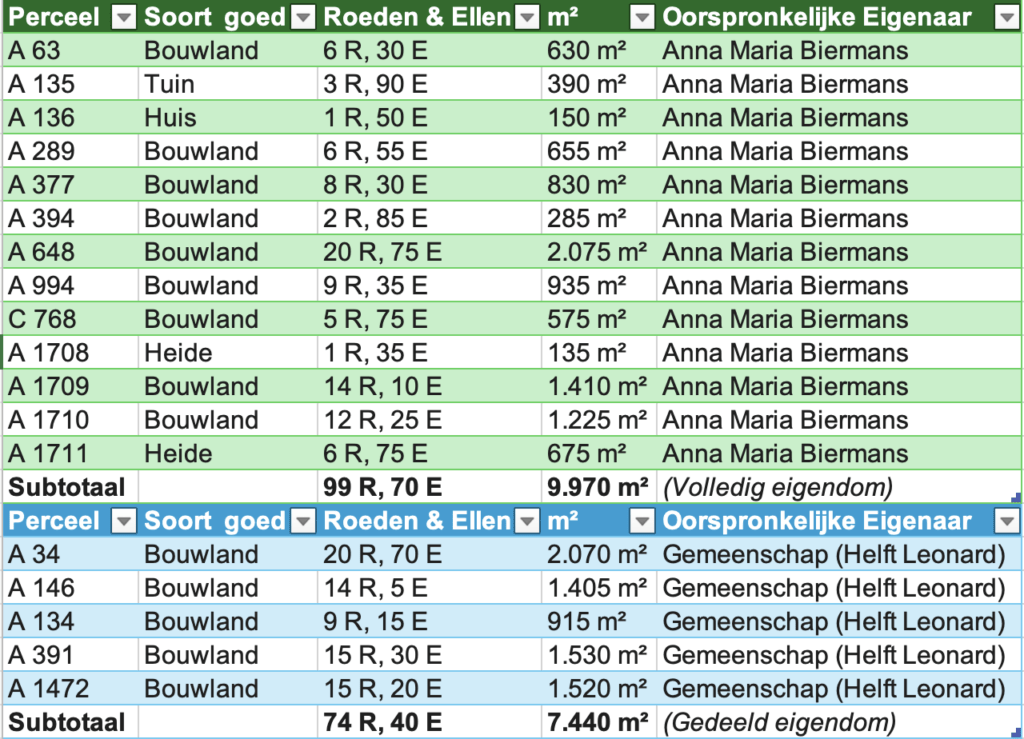 - Het landgoed: Ze bracht maar liefst 11 percelen eigen grond (bouwland, tuin en heide) in het huwelijk, met een totale oppervlakte van bijna 1 hectare.