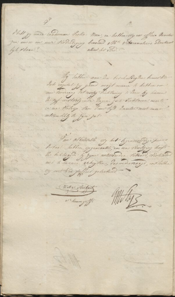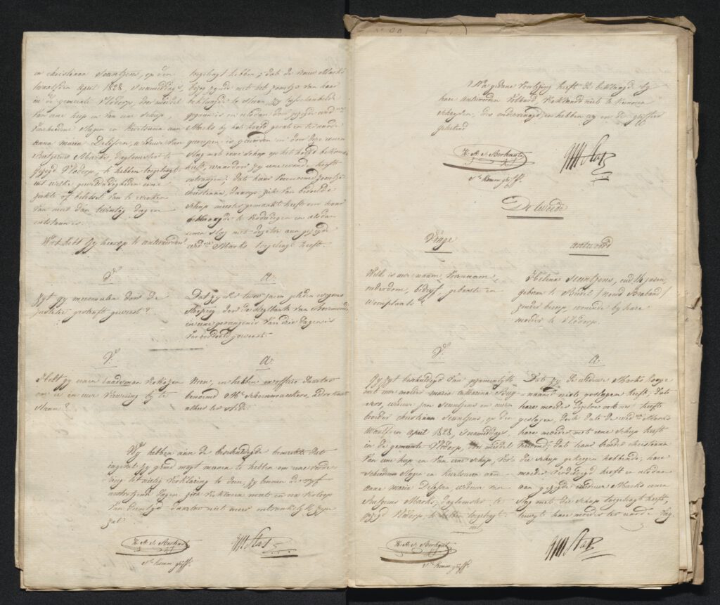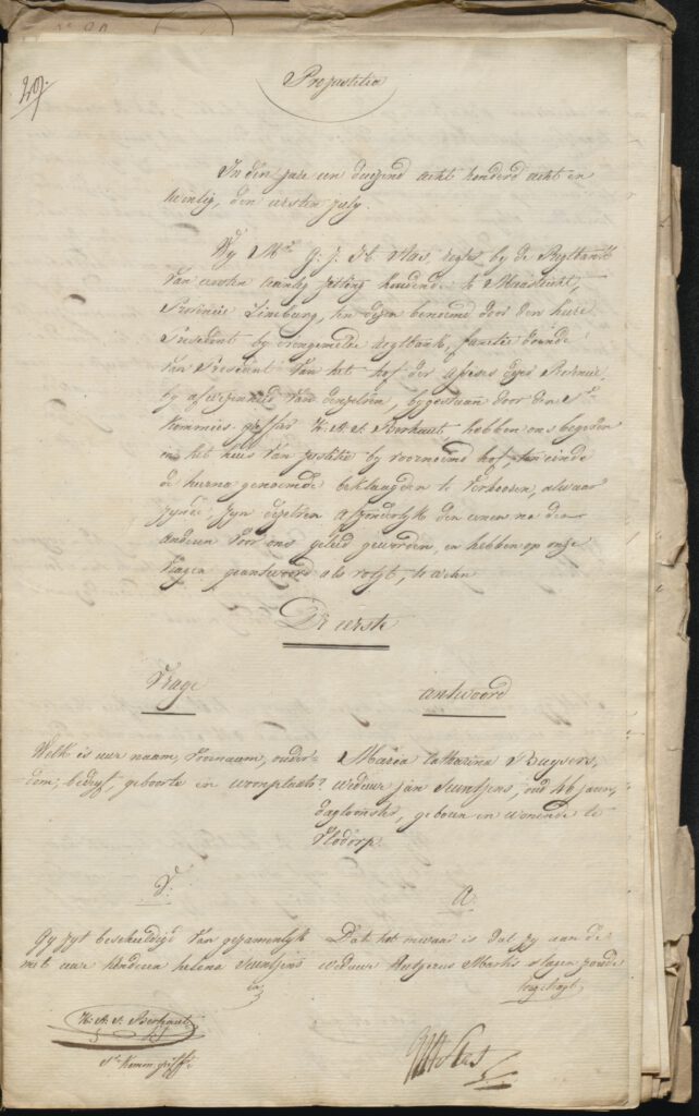 V.: Zyt gy meermalen door de justitie gestraft geweest? A.: Nimmer.