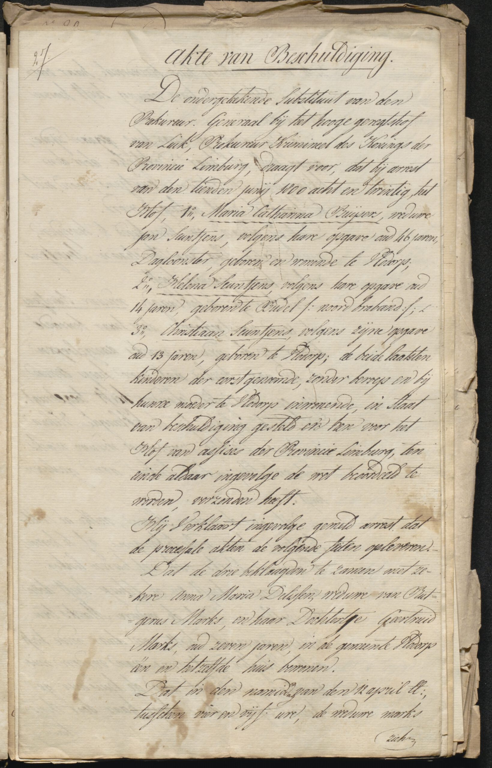 - 16 april 1828: Beëdigd verhoor van het slachtoffer, Anna Maria Delissen, afgenomen op haar ziekbed in Vlodrop