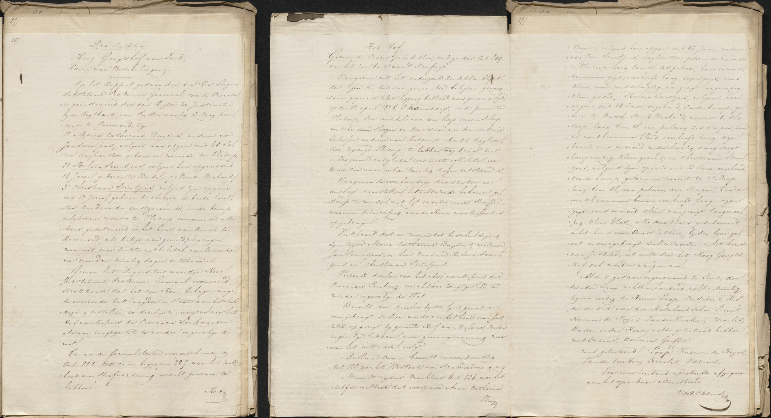Aan den Wel Edelen gestrengen Heer de Heer Procureur des Konings Van de Regtbank der eerste aanleg zitting houdende te Roermonde.
