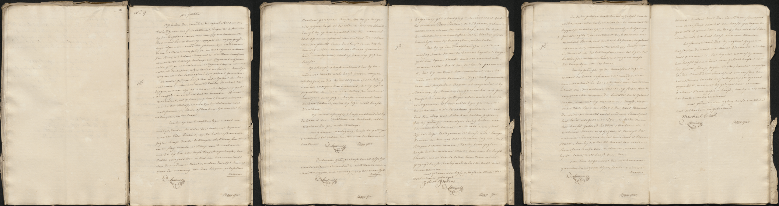 Dezelve Peter Piskens verklaart aan de te hebben dezelve zijnde uit het huis gekomen en gekeert de voornoemde Delissen roepende dat zij haer geslagen hadden, en dezelve gansch bebloed, behalve verklaart nog Michiel Bosch jong man oud zevenenveertig jaren zonder beroep nabeur van dezelve gezien te hebben. Terwijl de vrouw geslagen is dat zij niet gaan kan of gevaarlijk, zoo vonden het zeer noodig zijn zoo spoedig als mogelijk dezelve door Doctoor of Schirurijn te laten viseteren.