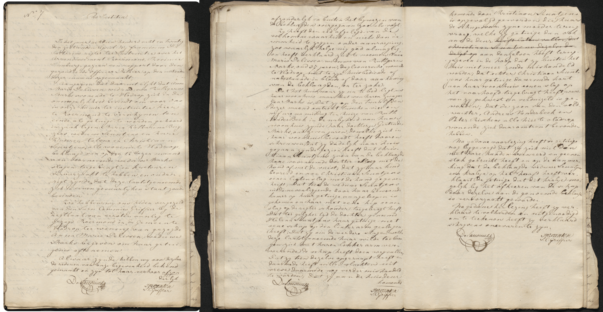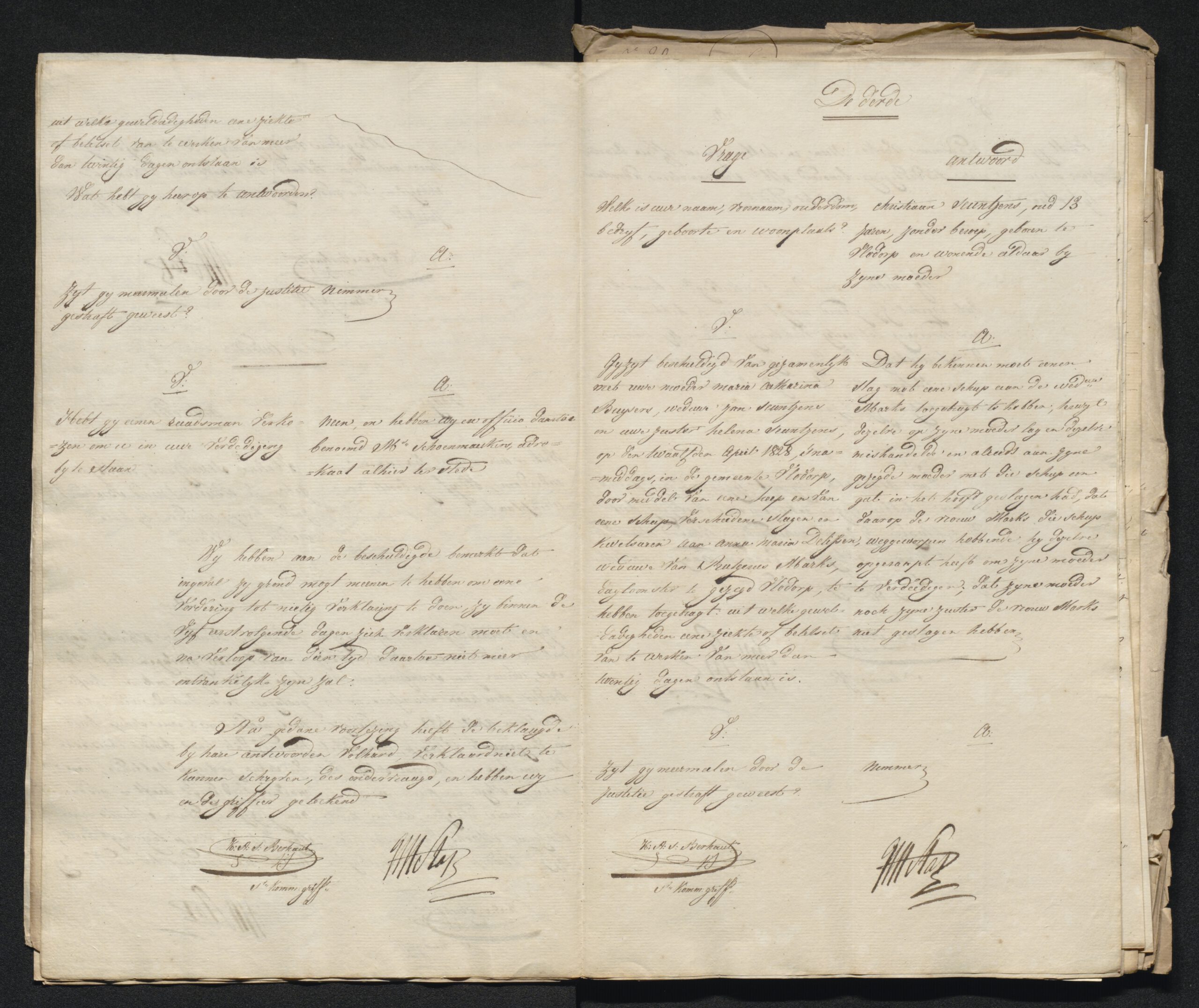 V.: Zyt gy meermalen door de justitie gestraft geweest? A.: Nimmer.