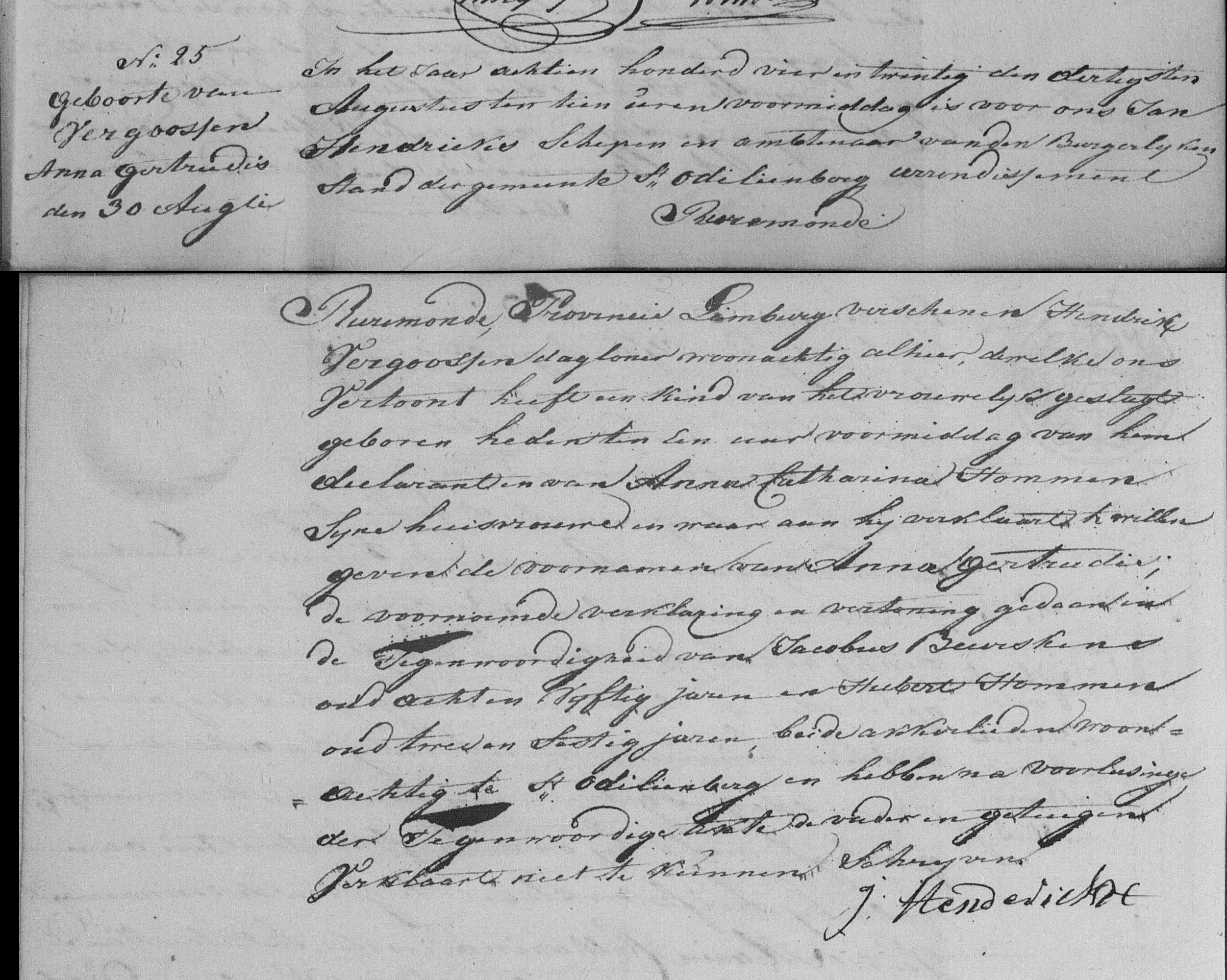 Anna Gertrudis Vergoossen werd geboren op 30 augustus 1824 in Sint Odiliënberg als dochter van Henricus Vergoossen en Anna Catharina Hommen.