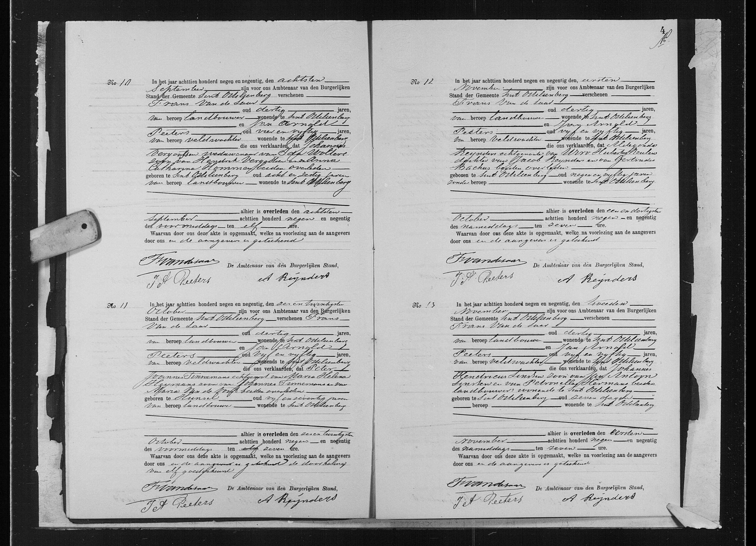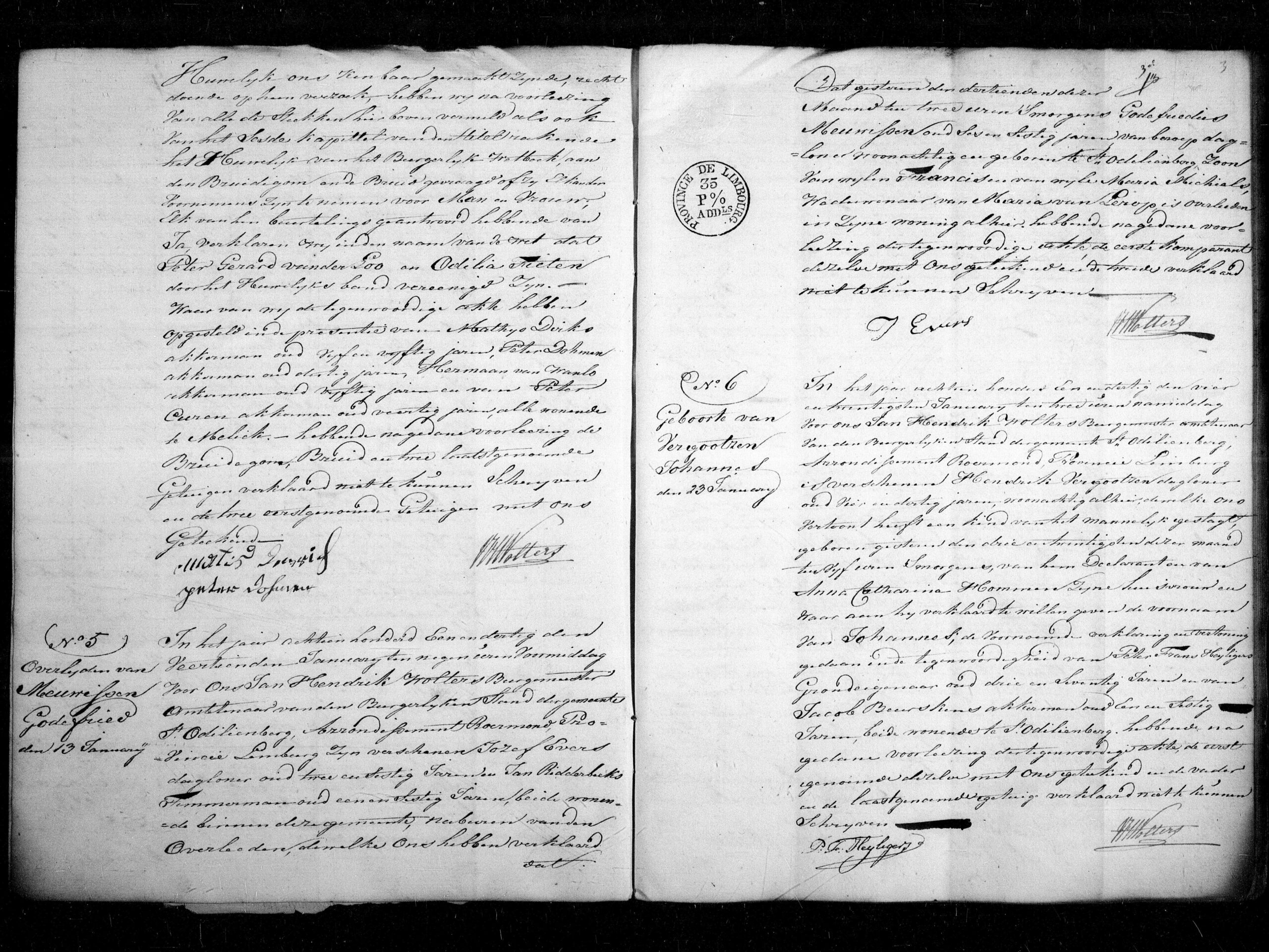 Getuigen: Peter Frans Heyligers, 73 jaar oud, grondeigenaar uit Sint Odiliënberg en Jacob Beurskens, 62 jaar oud, akkerman uit Sint Odiliënberg.