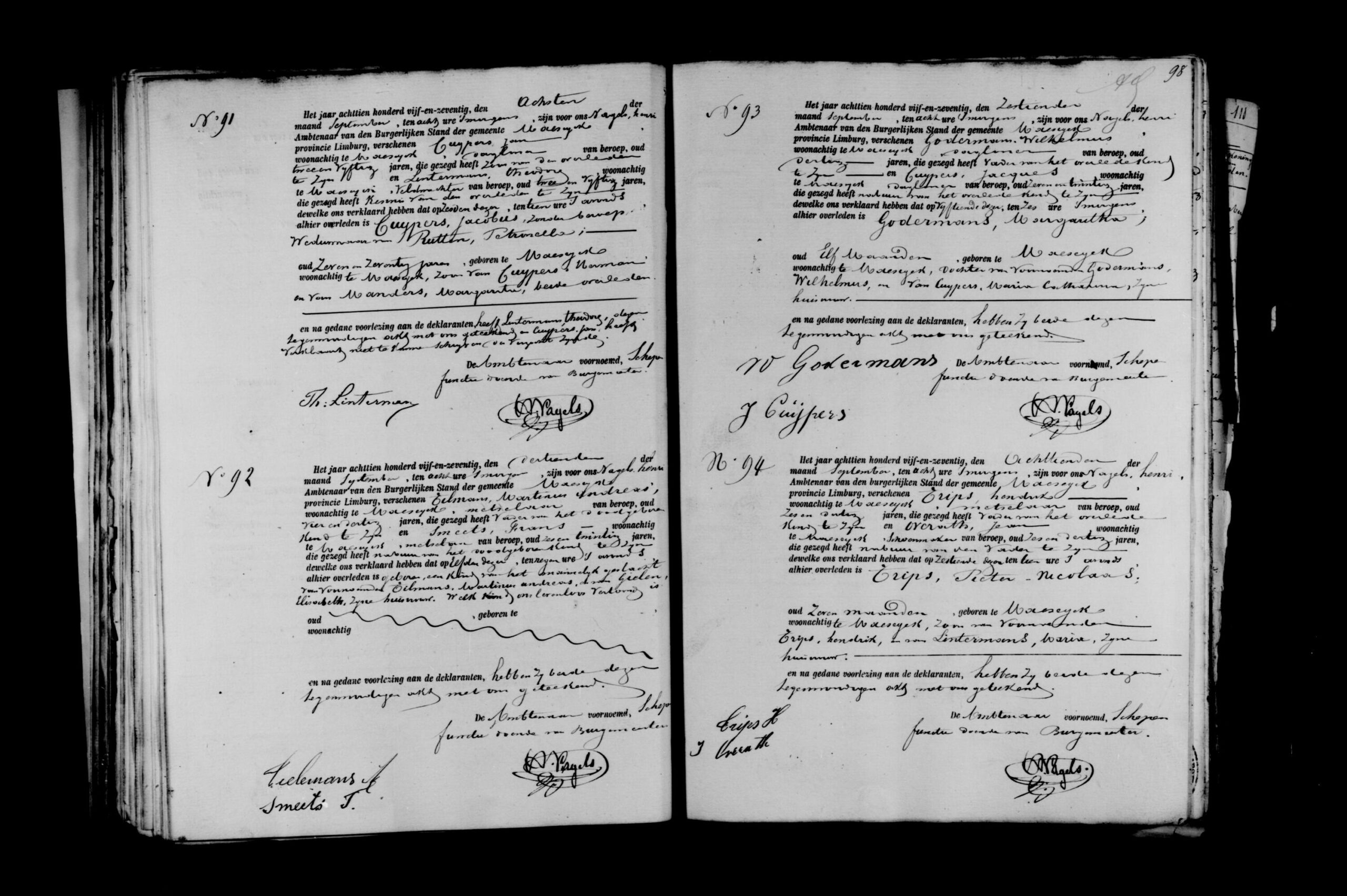 Getuigen: Henri Neel, 29 jaar oud, landbouwer uit Maaseik en Jean Overath, 36 jaar oud, schoenmaker uit Maaseik.