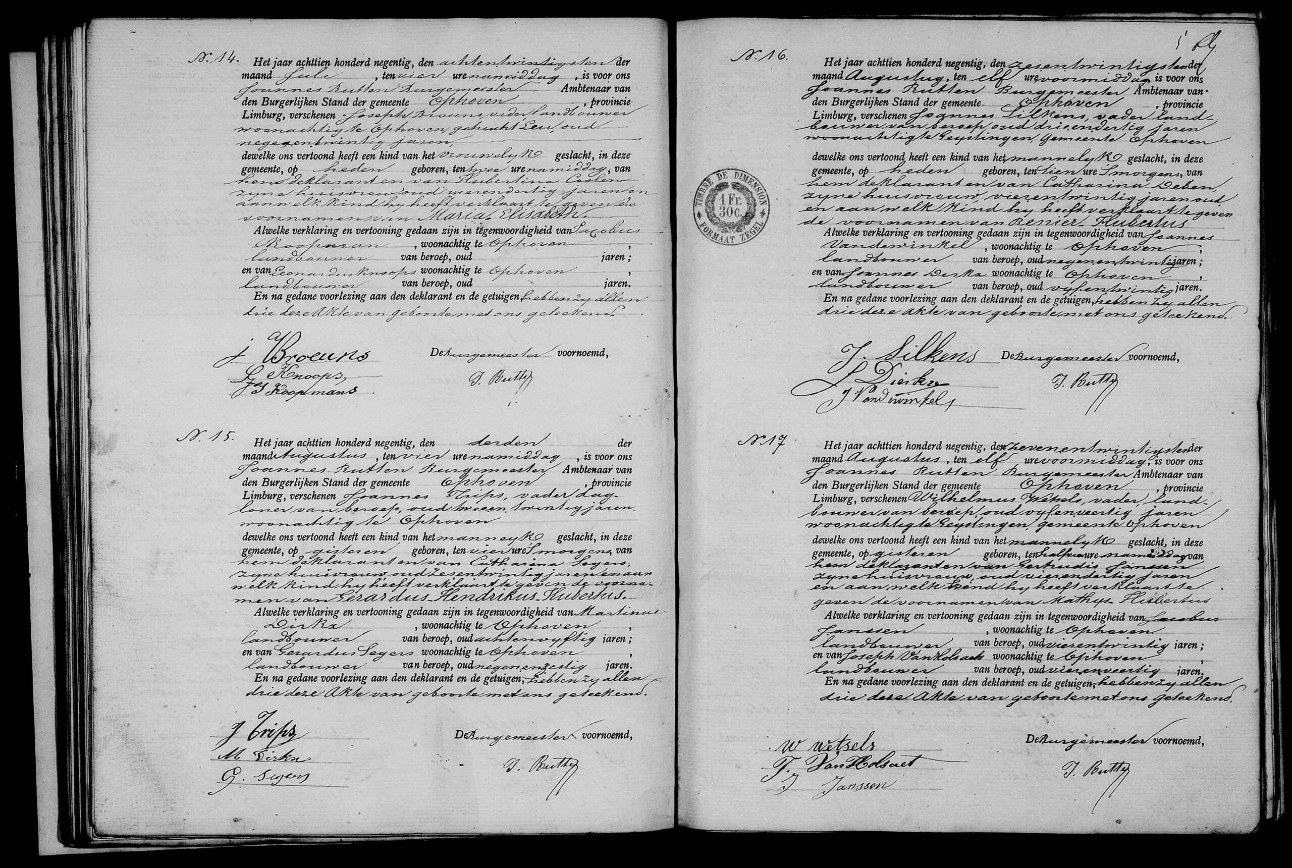 Getuigen: Martinus Dirkx, 58 jaar oud, landbouwer uit Ophoven en Gerardus Segers, 69 jaar oud, landbouwer uit Ophoven.