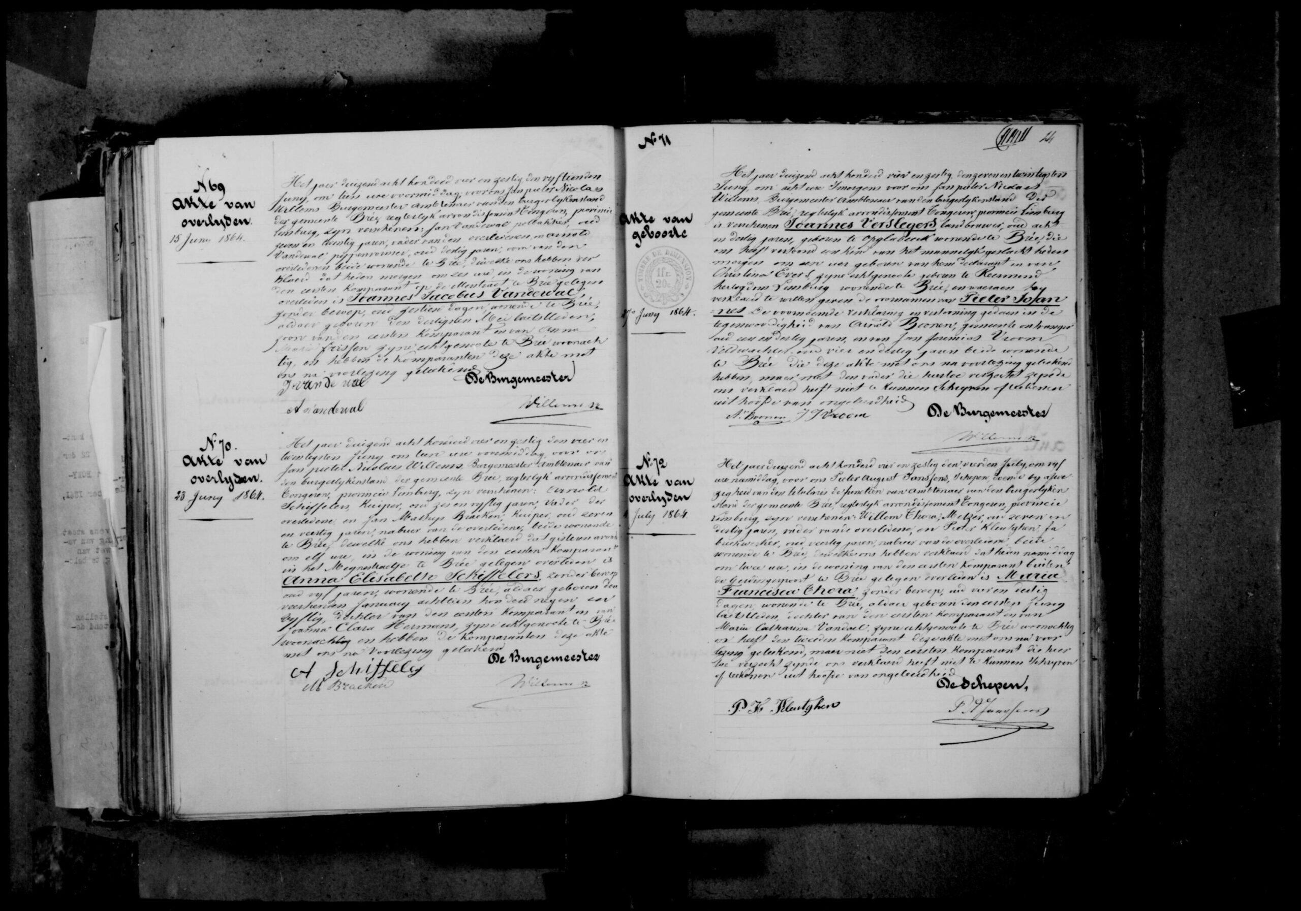 Getuigen: Arnold Boonen, 31 jaar oud, gemeenteontvanger uit Bree en Jan Jeremias Vroom, 34 jaar oud, veldwachter uit Bree.