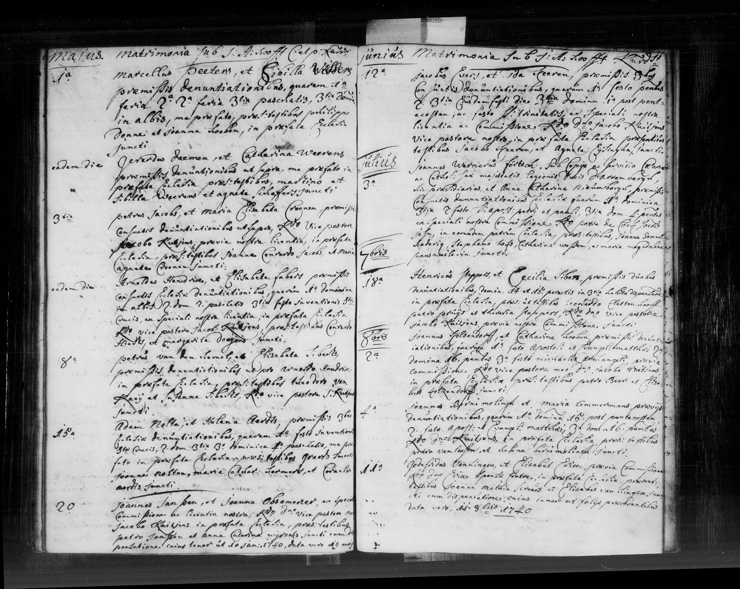 Het huwelijk vond plaats in de voornoemde kerk, voltrokken door vice-pastoor Jacobus Kuijtjens met speciale toestemming en opdracht. Voorafgaand vonden de drie gebruikelijke huwelijksafkondigingen plaats: de eerste met Pinksteren, de tweede op de derde dag van Pinksteren en de derde op de eerste zondag na Pinksteren (feest van de Heilige Drie-eenheid).