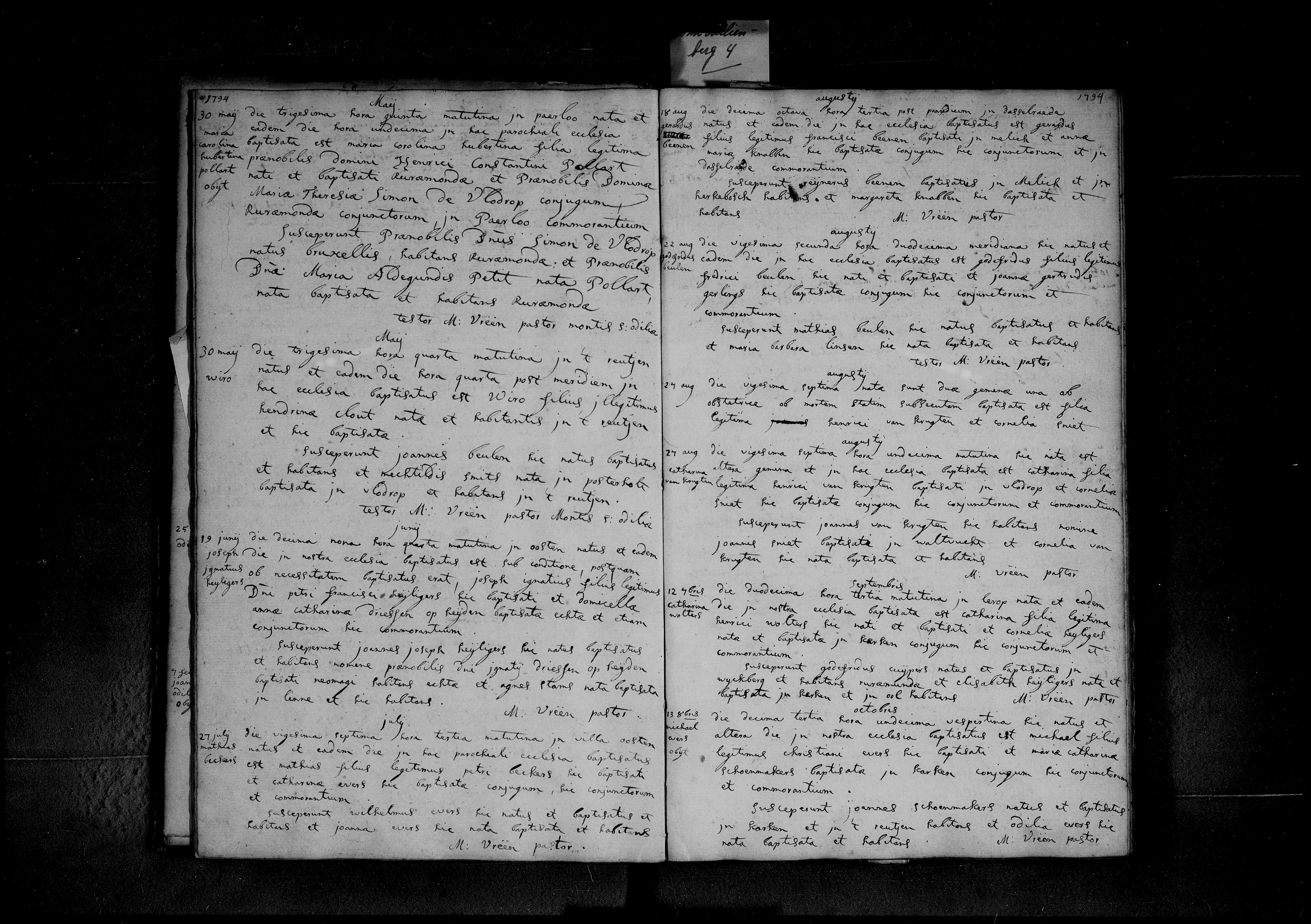 Op de vijfentwintigste dag van december, om vier uur in de ochtend, is in de hoeve/buurtschap Genhuijs overleden: Michael, geboren op 13 oktober van dit jaar, zoon van Christianus Evers, landbouwer. En hij is begraven op de 25e van deze maand [Eerste Kerstdag] op het kerkhof van onze kerk.