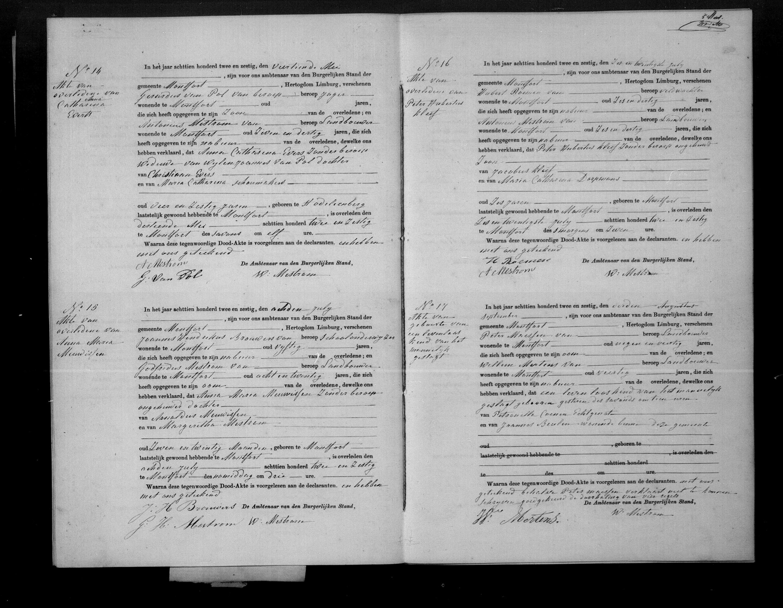 Aangevers: Gerardus Van Pol, jager, zoon van de overledene en Antonius Mestrom, landbouwer, buur.
