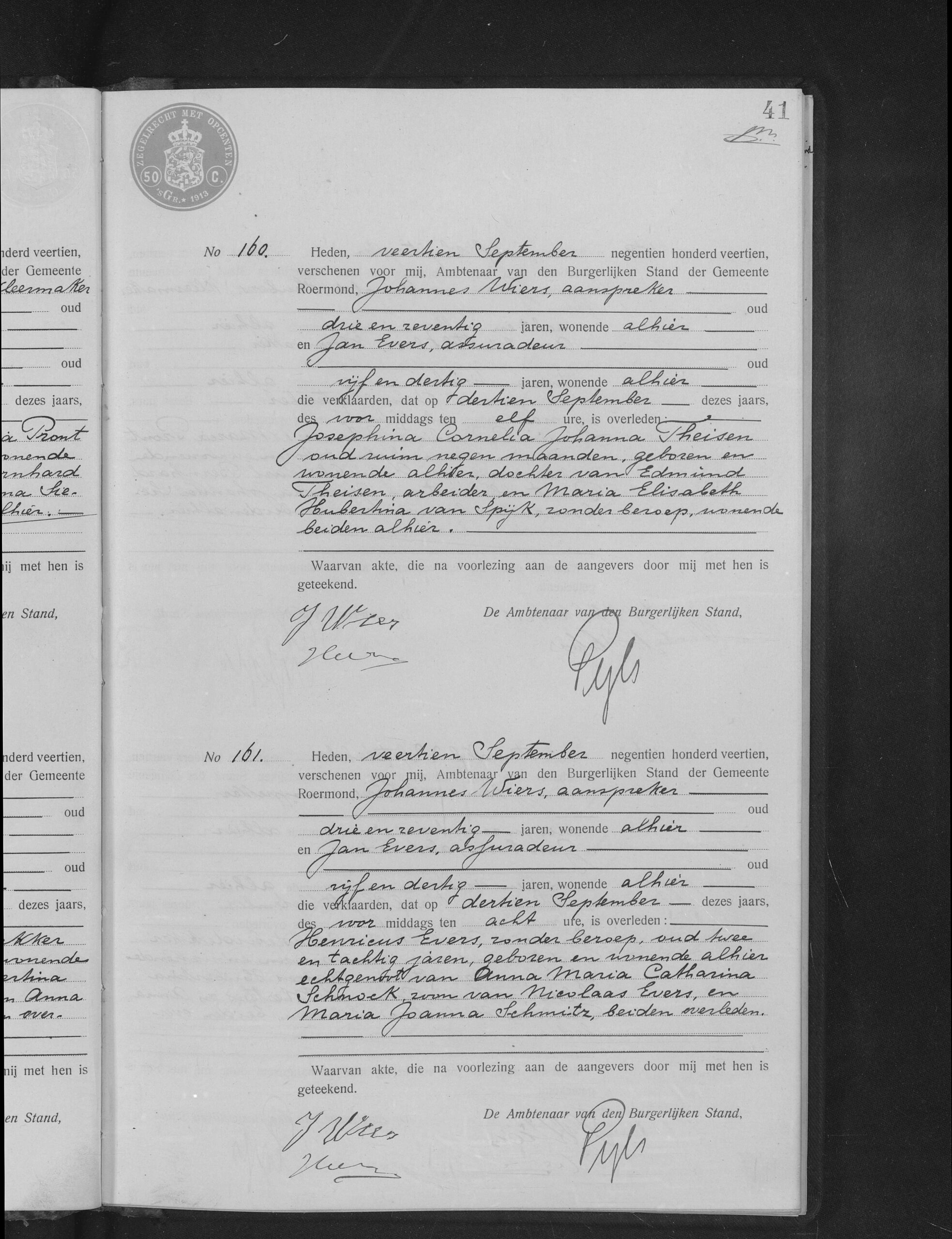 * 17 juli 1866 in Roermond - Josephus Hubertus Evers