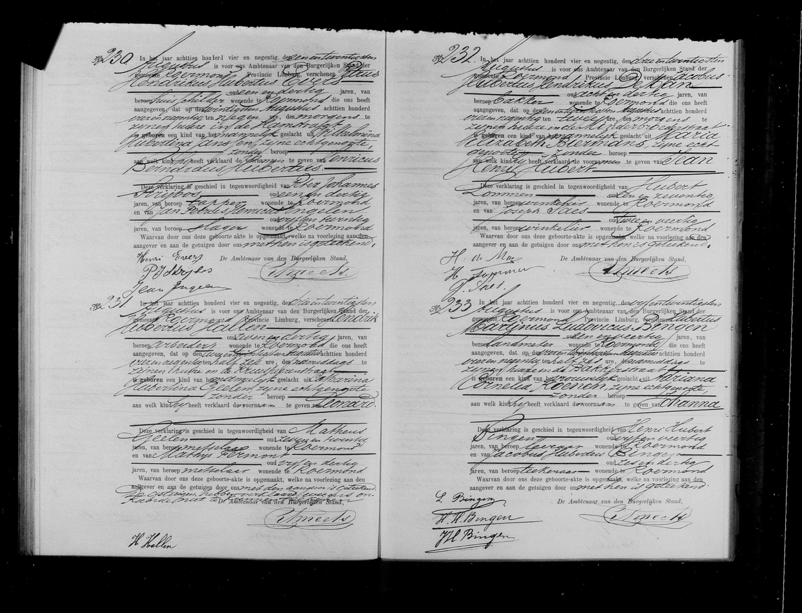 - Getuigen bij de geboorteaangifte: Peter Johannes Strijbos, 31 jaar oud, kapper uit Roermond, geen relatie vermeld, en Jan Petrus Henricus Engelen, 25 jaar oud, slager uit Roermond, geen relatie vermeld