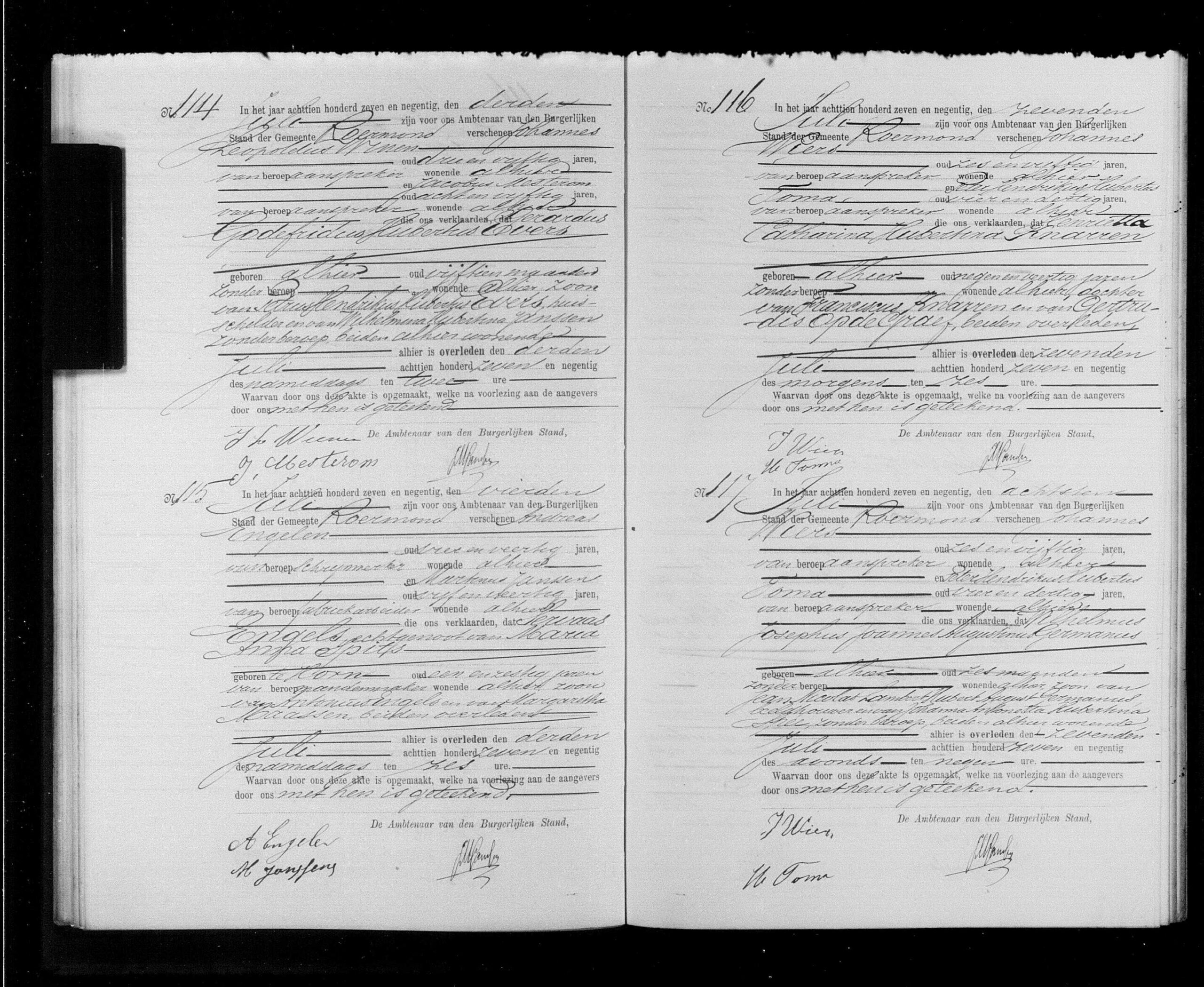 Aangevers: Johannes Leopoldus Wien?, 53 jaar oud, aanzegger uit Roermond en Jacobus Mesterom, 55 jaar oud, aanzegger uit Roermond.