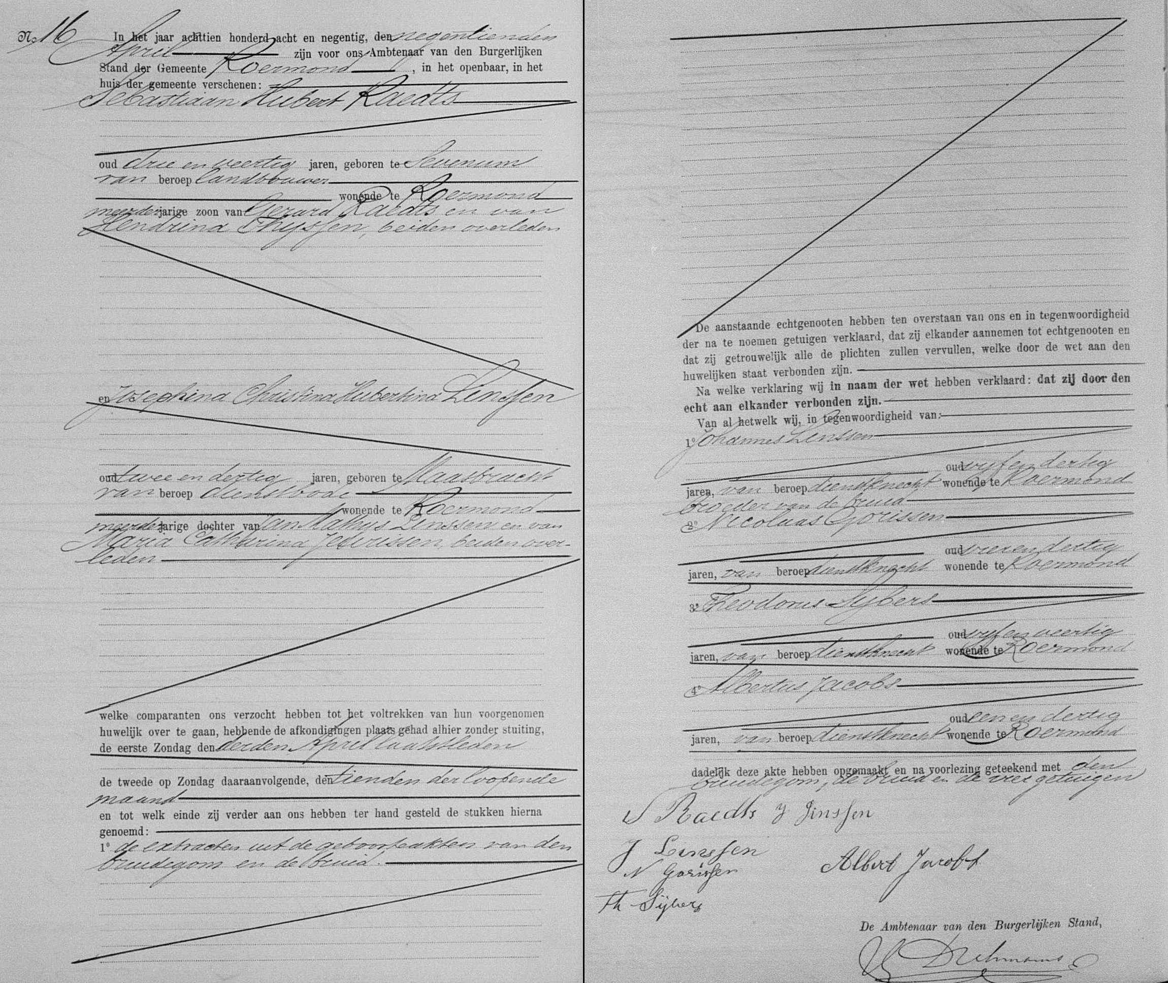Burgerlijk huwelijk: 19 april 1898 in Roermond