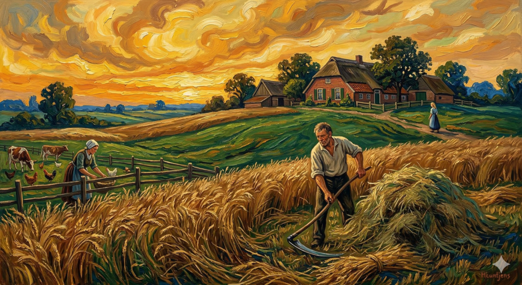 Leonardus en Anna Maria werkten keihard om hun boerenbedrijf draaiende te houden en de zware leningen, die met het land als onderpand waren afgesloten, af te lossen. Terwijl Anna Maria als landbouwster de akkers bewerkte, nam Leonardus in de rustigere seizoenen zijn slijpsteen op de rug en trok hij als scharenslijper langs de dorpen om de broodnodige extra munten te verdienen.