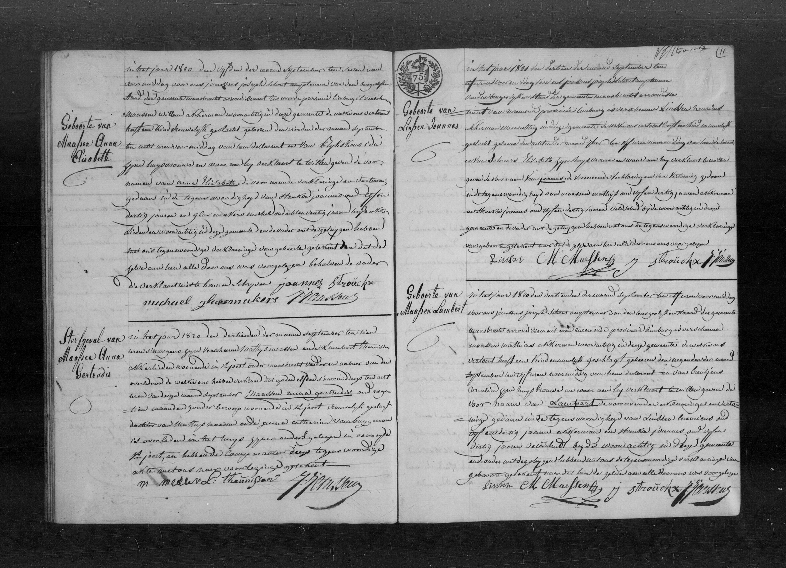 Getuigen: Henricus Linssen, 35 jaar oud, akkerman uit Maasbracht en Joannes Stroucken, 35 jaar oud, veldwachter uit Maasbracht.