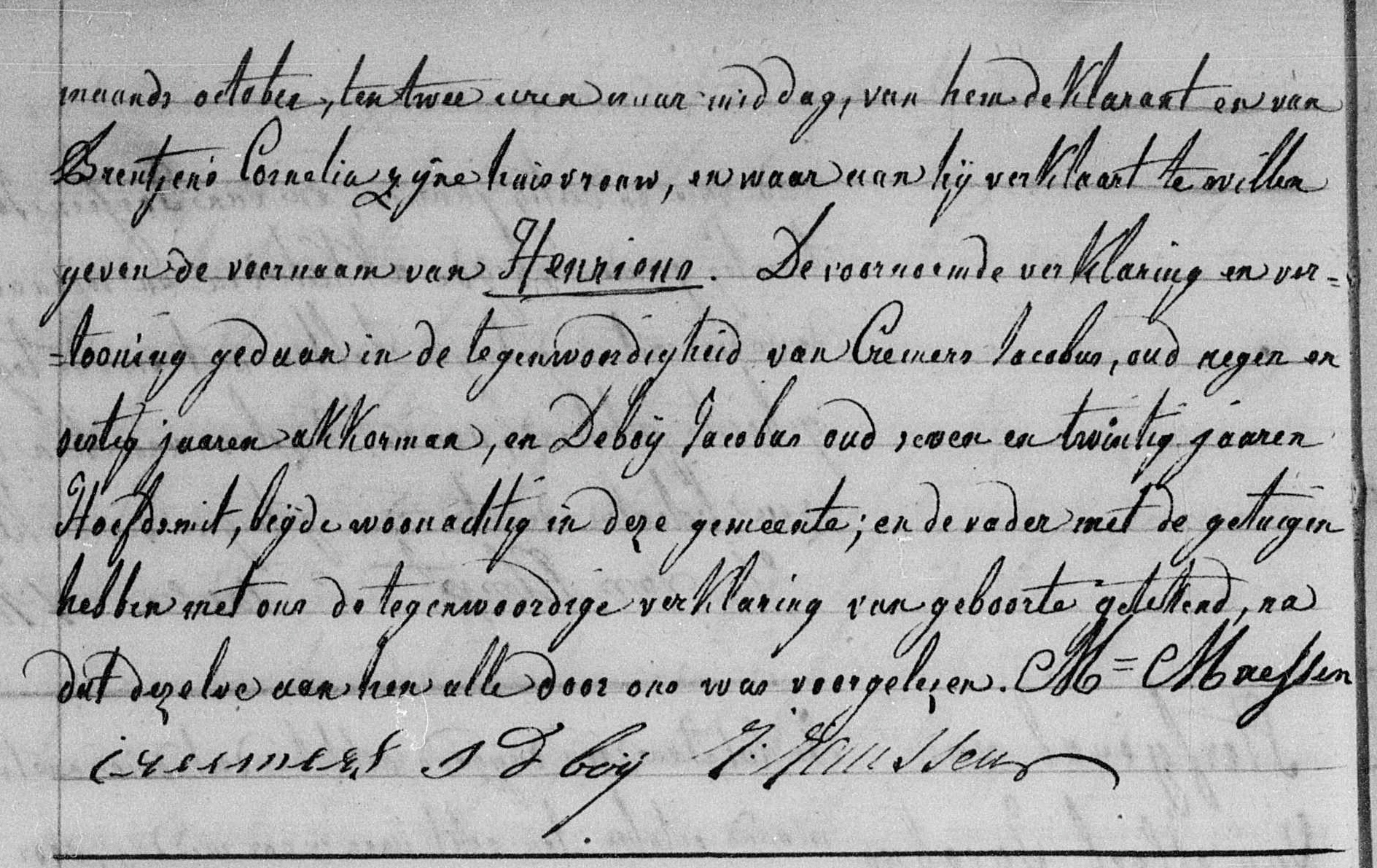Getuigen: Jacobus Cremers, 69 jaar oud, akkerman uit Maasbracht en Jacobus Debeij, 27 jaar oud, hoefsmid uit Maasbracht.
