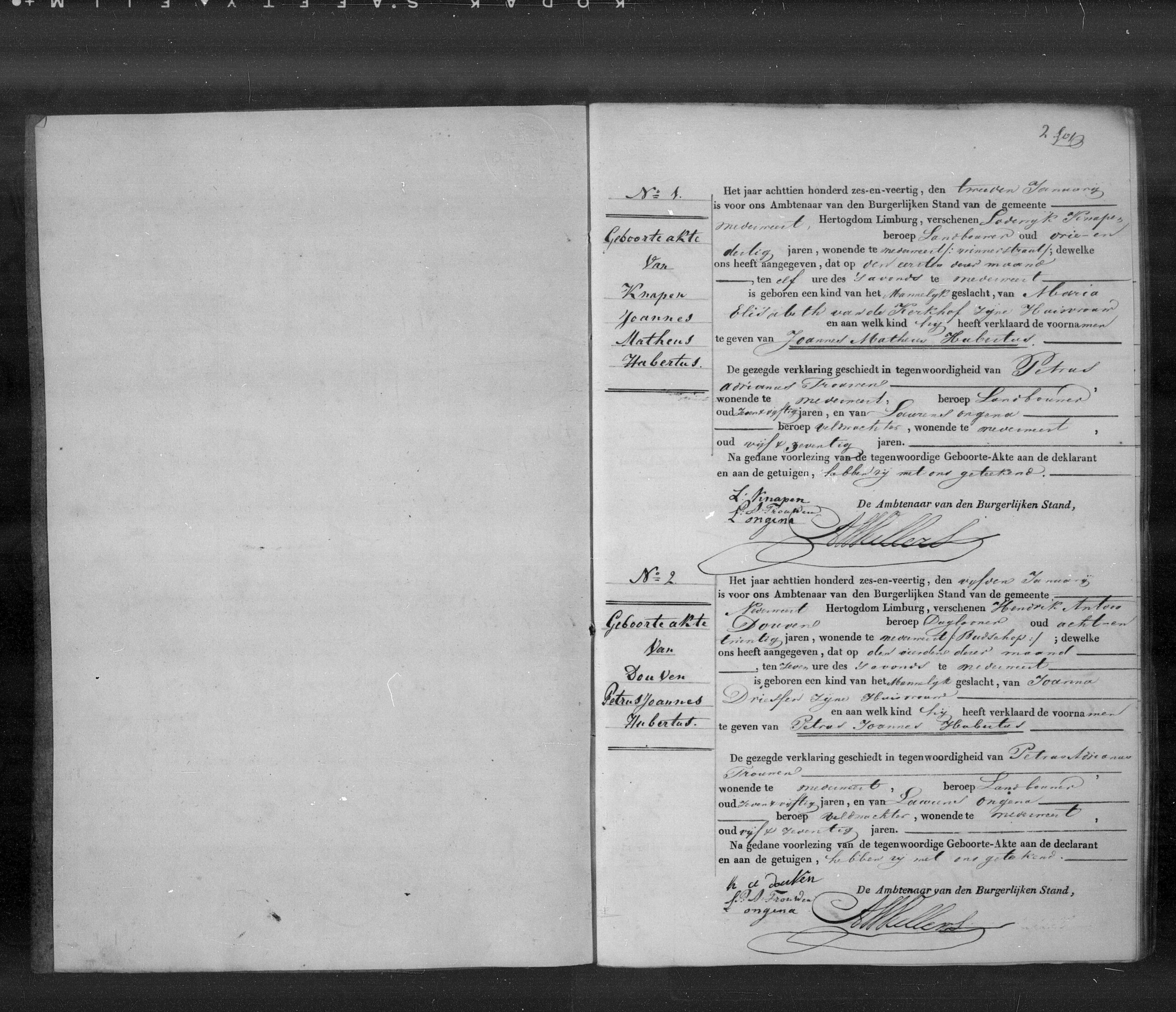 Getuigen: Petrus Adrianus Trouwen, 57 jaar oud, landbouwer uit Nederweert en Laurens Ongena, 75 jaar oud, veldwachter uit Nederweert.