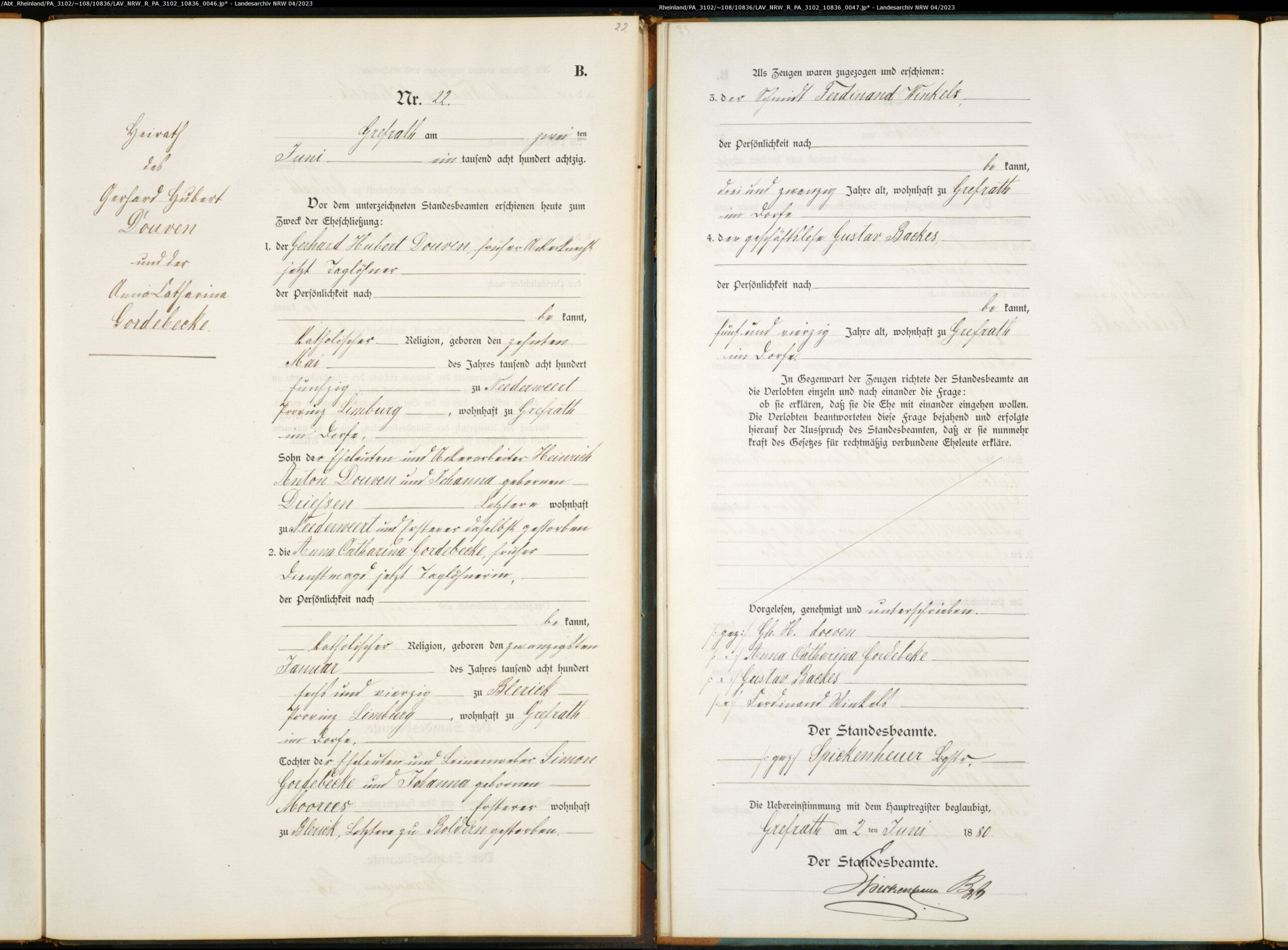 Burgerlijk huwelijk: 2 juni 1880 in Grefrath