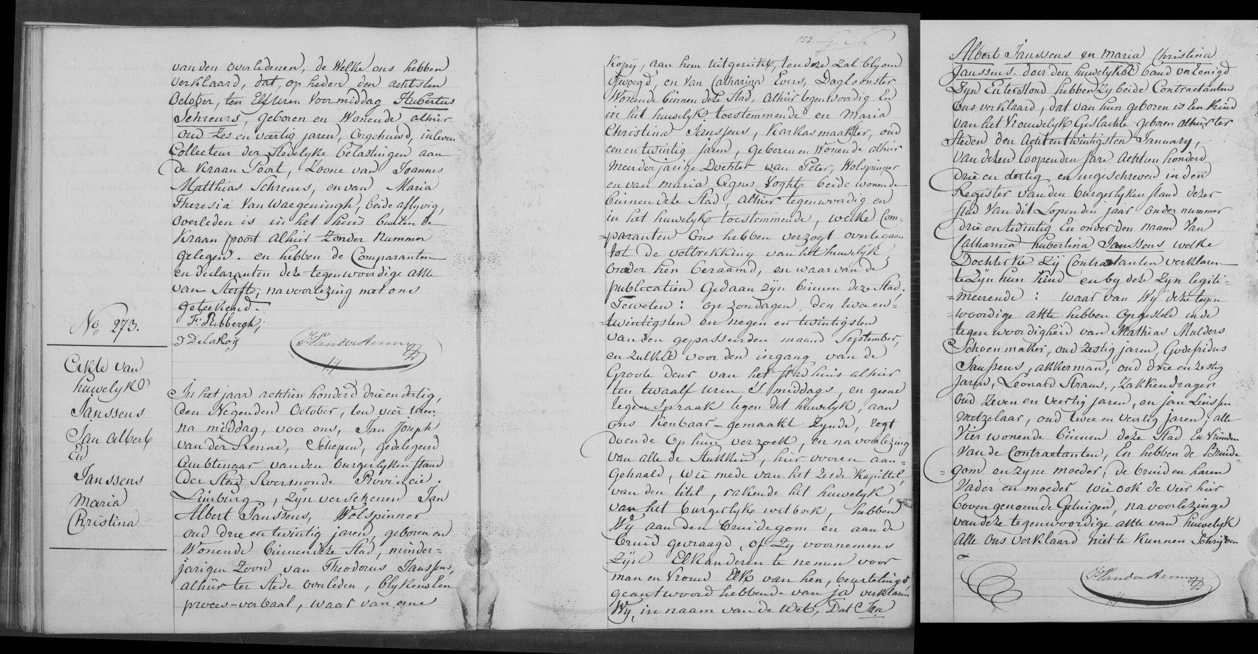 Burgerlijk huwelijk: 9 oktober 1833 in Roermond