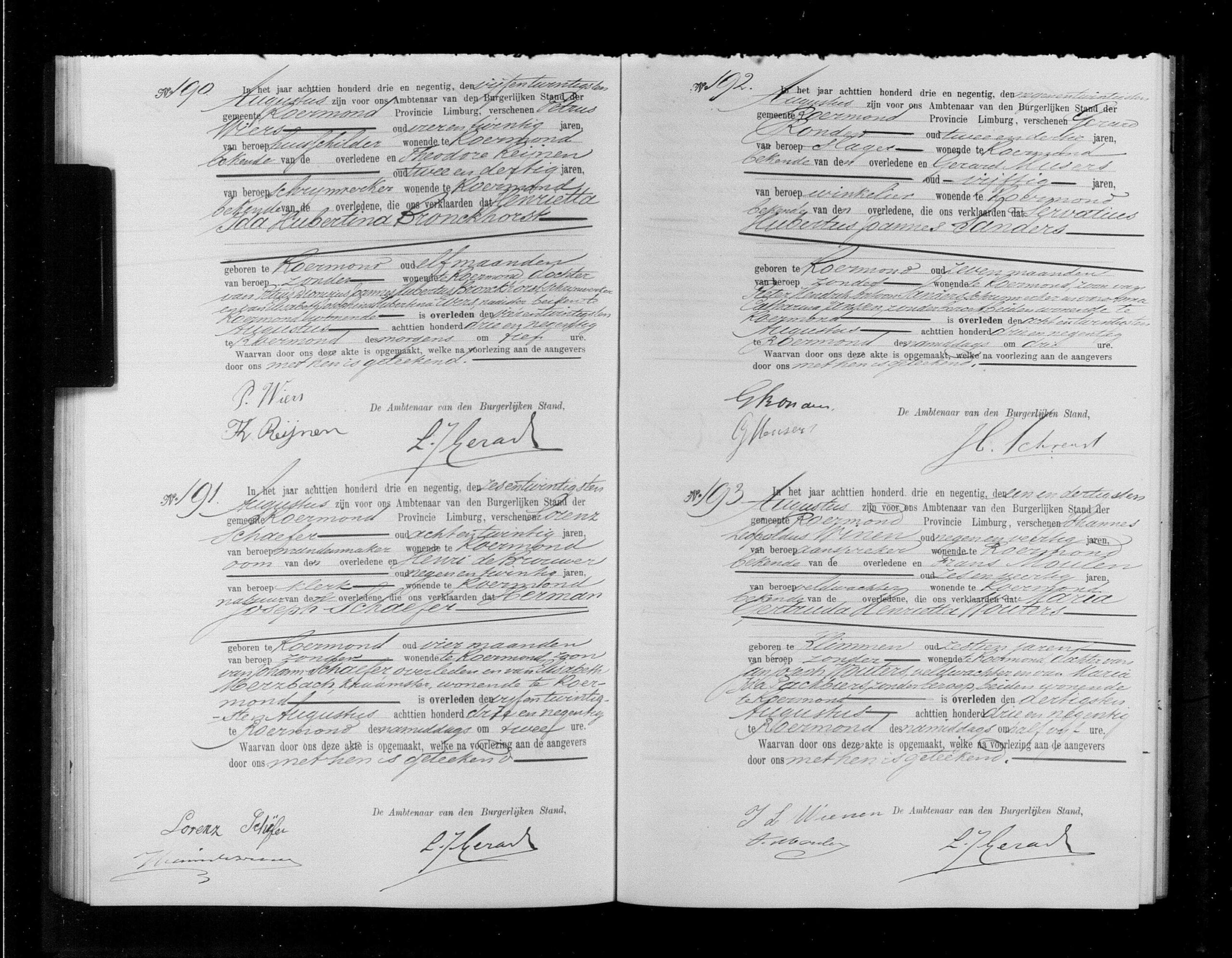 Overlijden: 24 augustus 1893 in Roermond