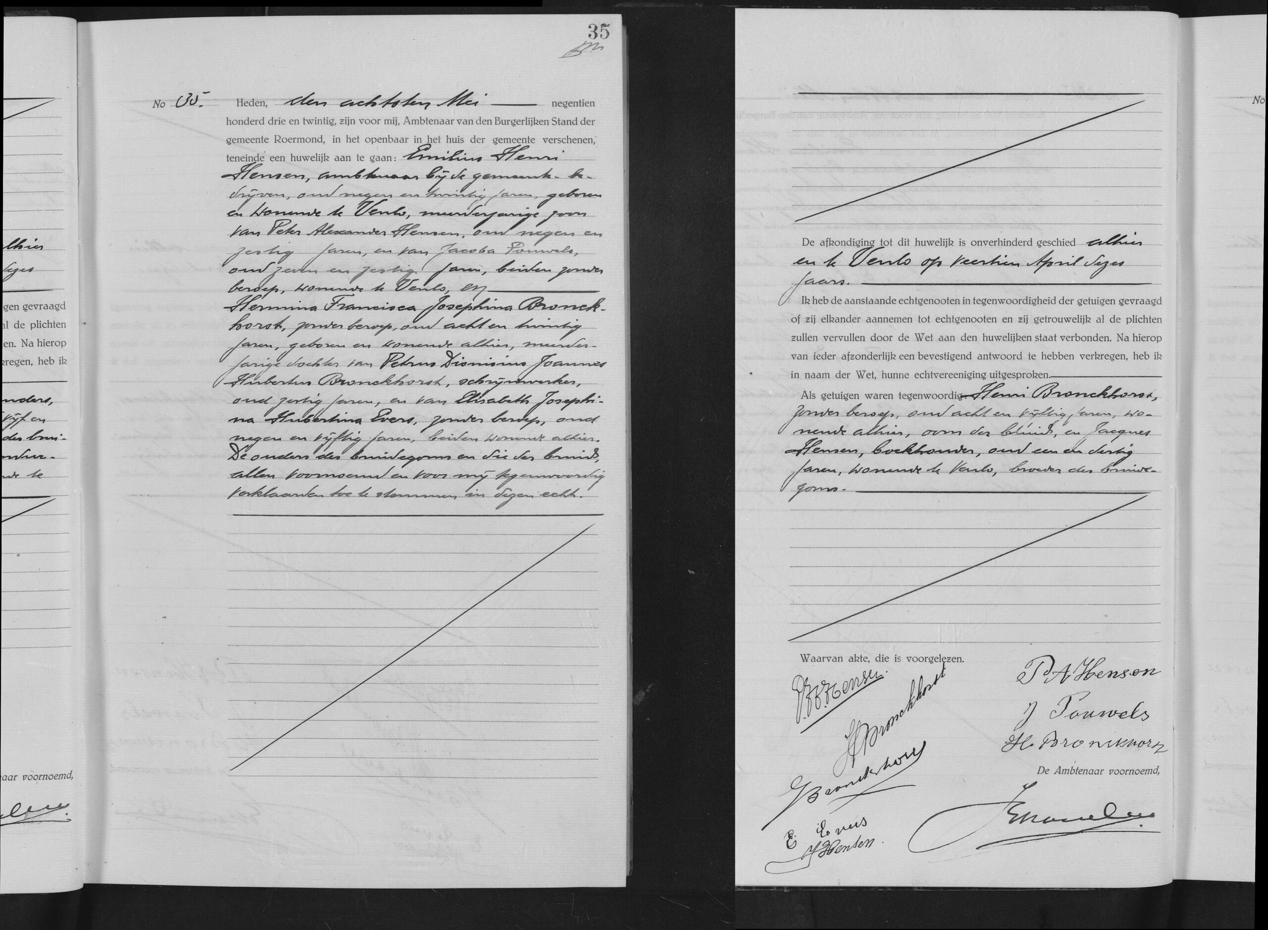 Burgerlijk huwelijk: 8 mei 1923 in Roermond