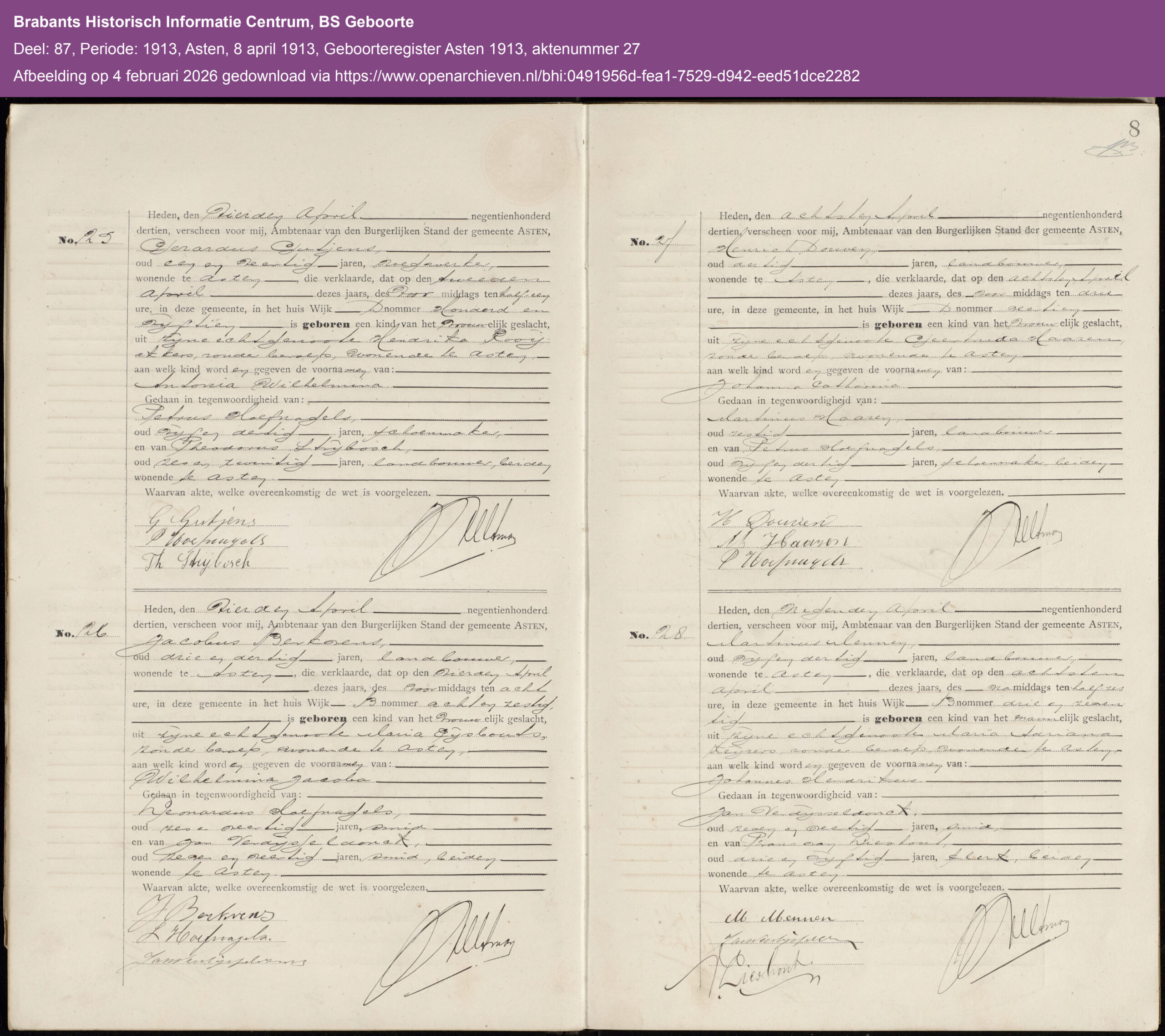 Getuigen: Martinus Haazen, 60 jaar oud, landbouwer uit Asten en Petrus Hoefnagels, 34 jaar oud, schoenmaker uit Asten.