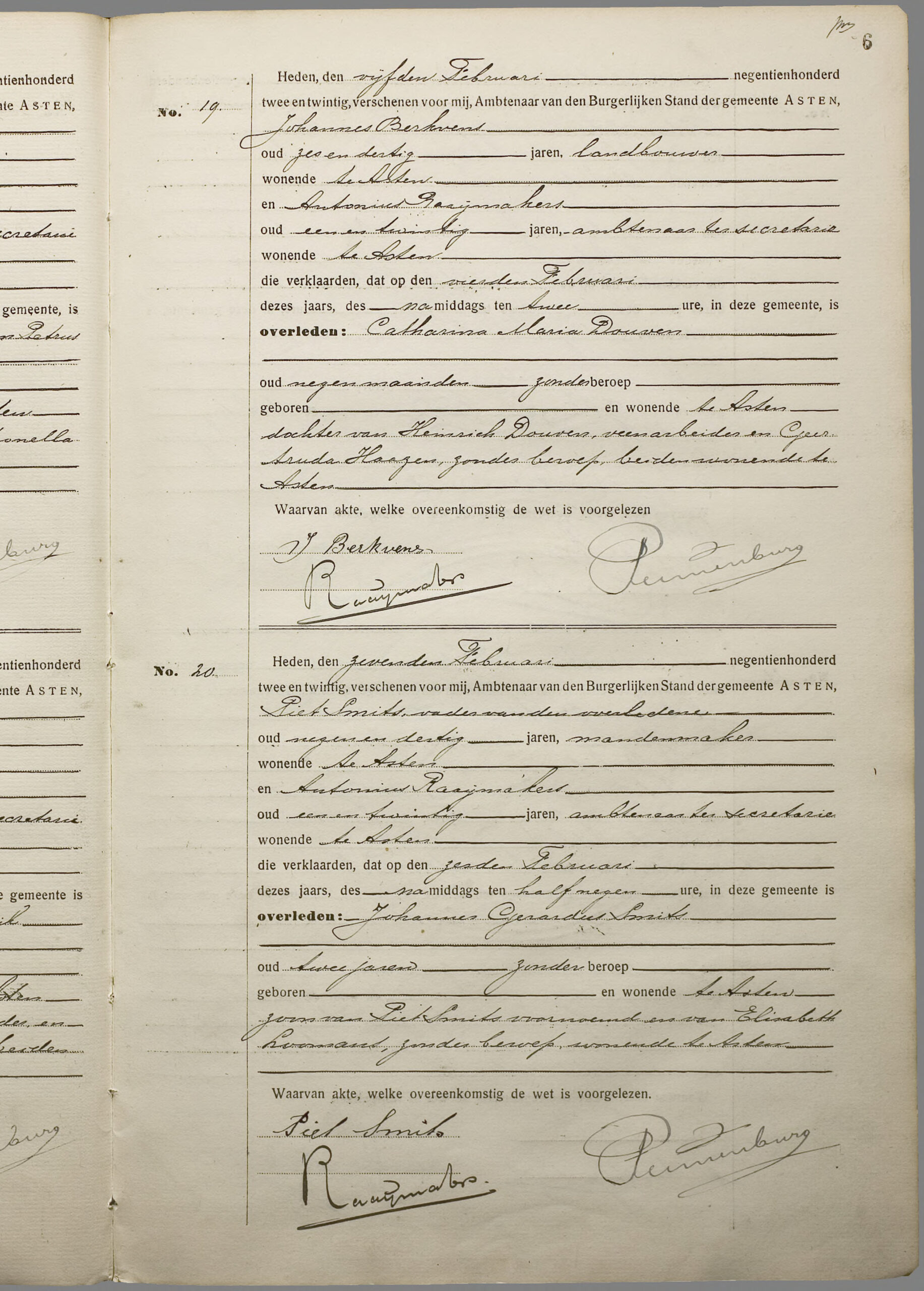 Overlijden: 4 februari 1922 in Asten