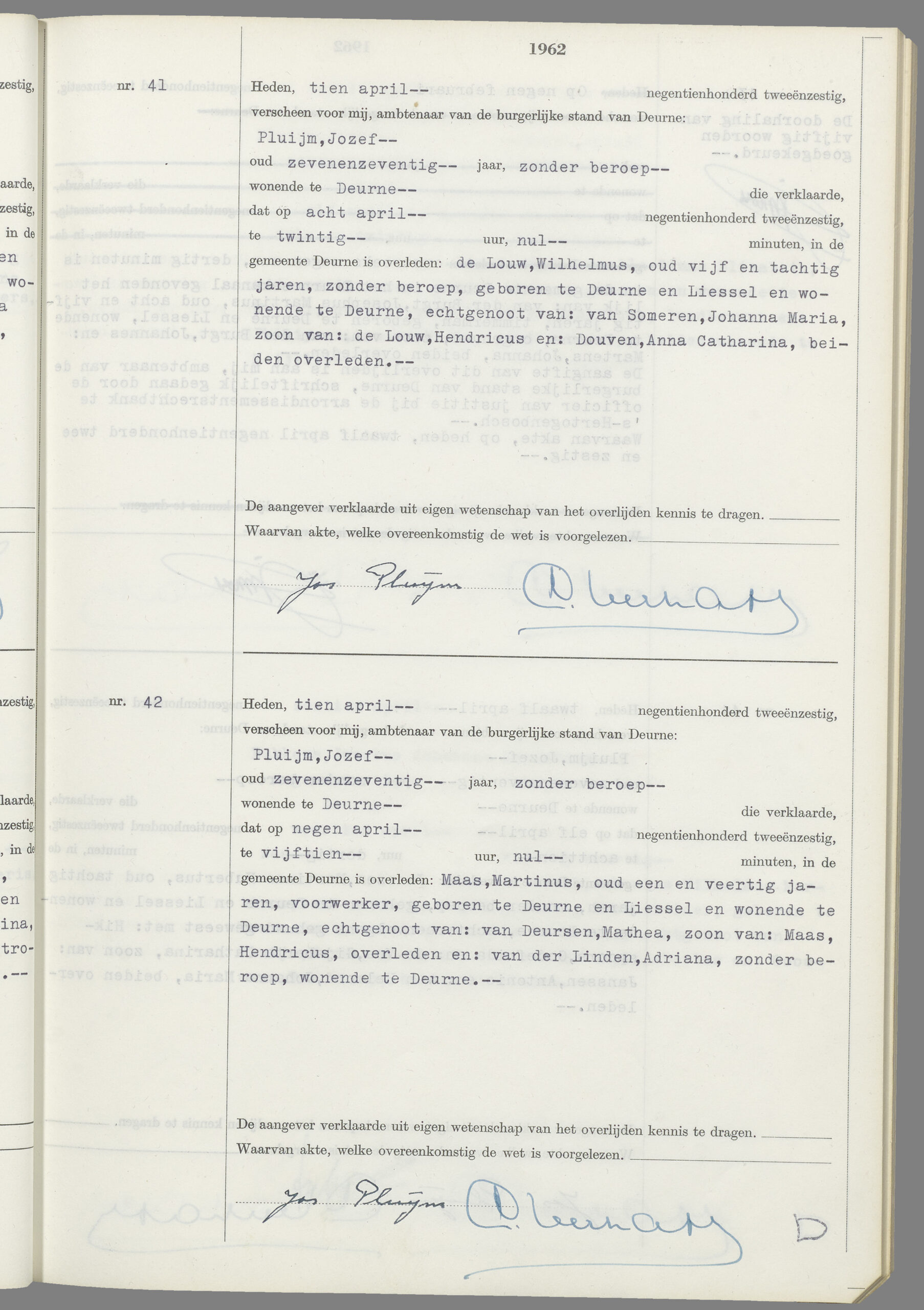 - Aangever van het overlijden: Jozef Pluijm, 77 jaar, zonder beroep, wonende te Deurne