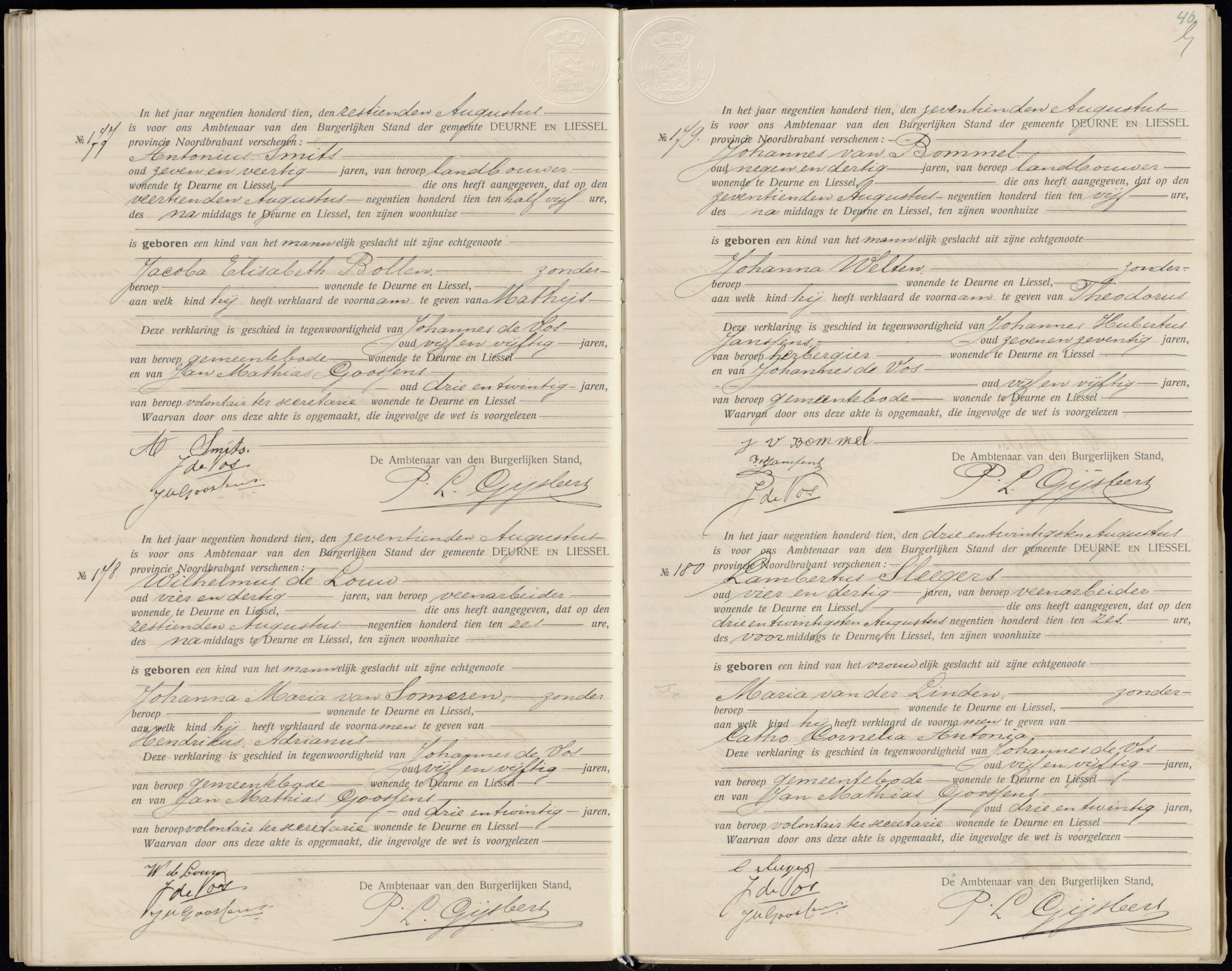 Getuigen: Johannes de Vos, 55 jaar oud, gemeentebode uit Deurne en Liessel en Jan Mathias Goossens, 23 jaar oud, volontair ter secretarie uit Deurne en Liessel.