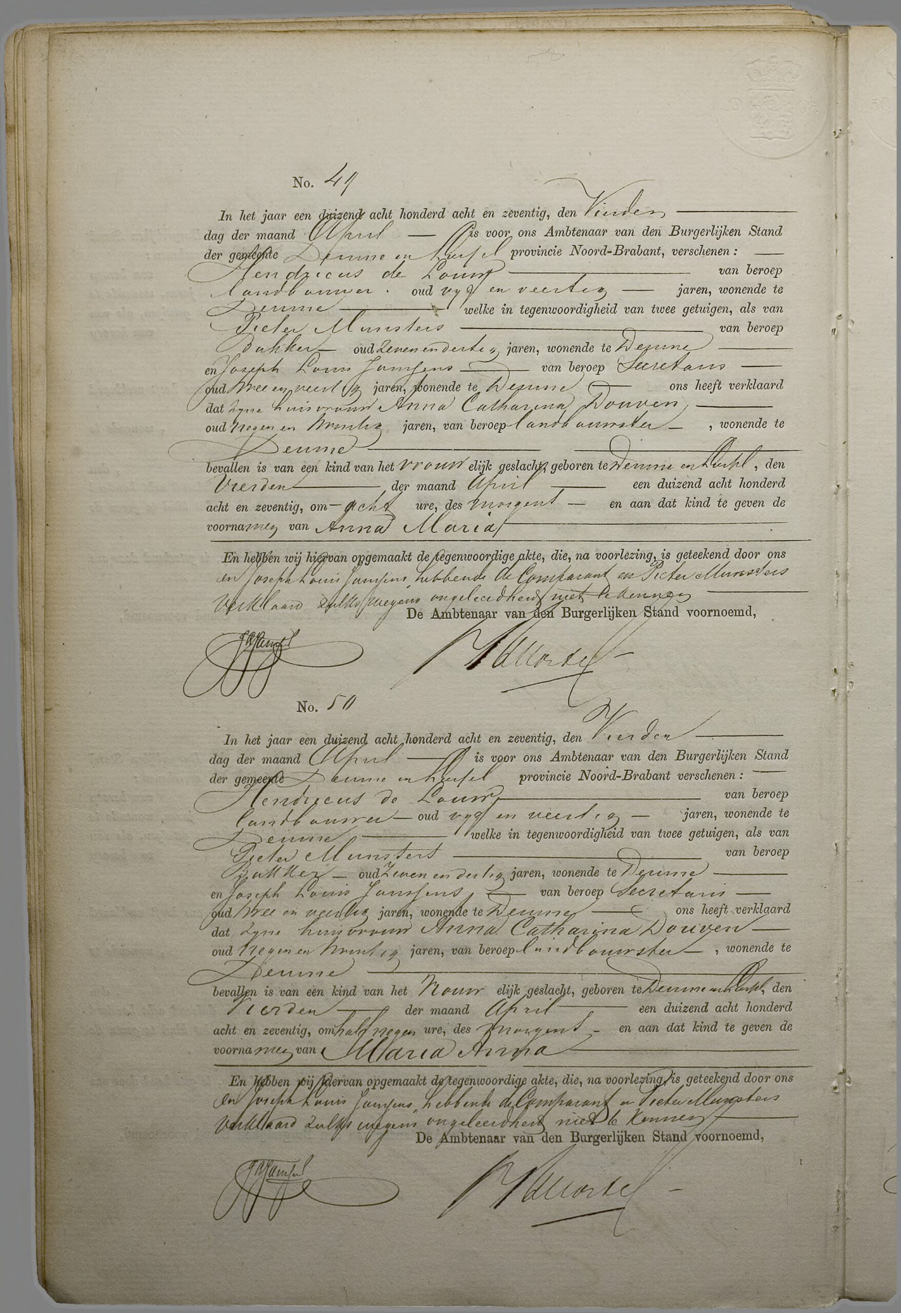 Getuigen: Pieter Munsters, 37 jaar oud, bakker uit Deurne en Joseph Louis Janssens, 44 jaar oud, secretaris uit Deurne.