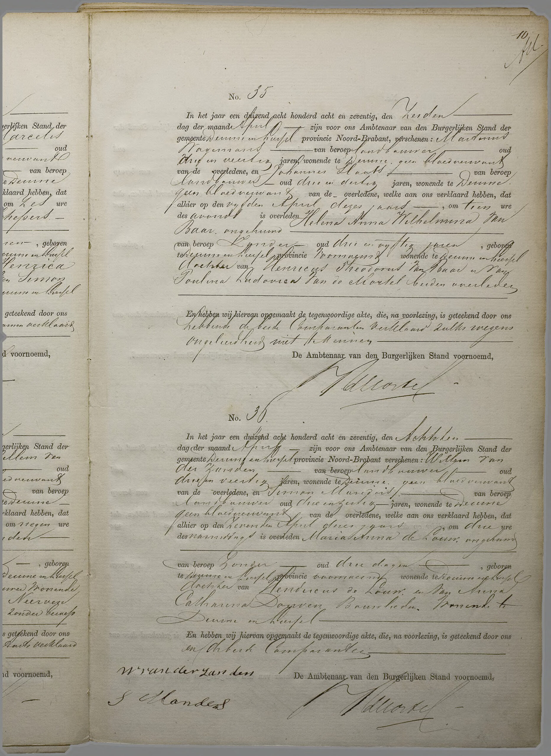 - Aangevers van het overlijden: Willem van der Zanden, 43 jaar oud, veldwachter uit Deurne en Simon Manders, 62 jaar oud, landbouwer uit Deurne.