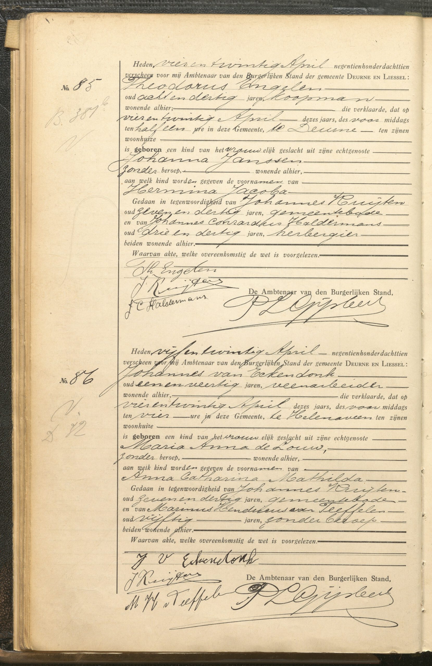 Getuigen: Johannes Kuijten, 47 jaar oud, gemeentebode en Marinus Wendelunus van Teeffelen, 50 jaar oud, zonder beroep.