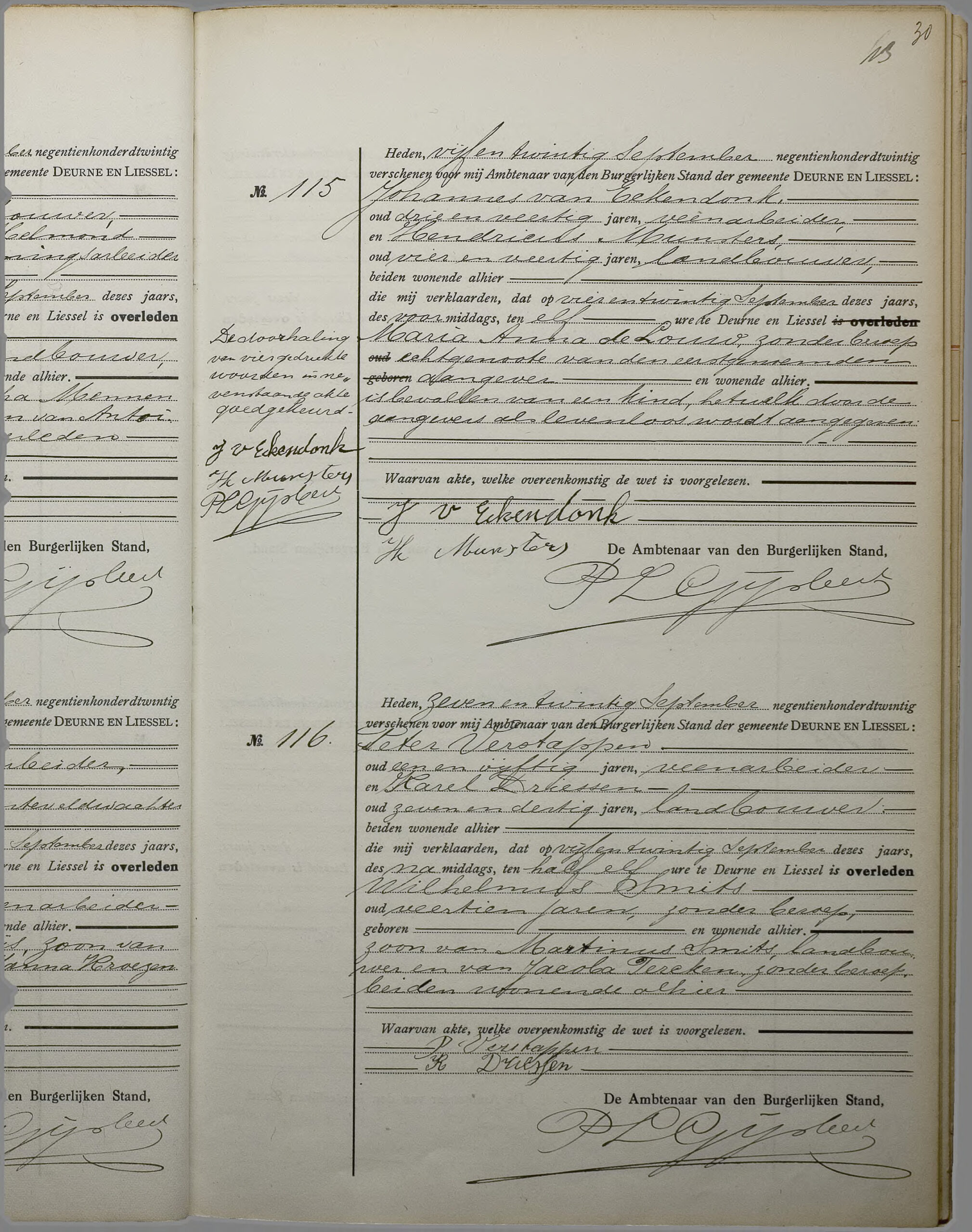 - Aangevers: Johannes van Eckendonk, oud drie en veertig jaren, veenarbeider, vader van het kind, en Hendricus Munsters, oud zes en veertig jaren, landbouwer, beiden wonende in Deurne Liessel