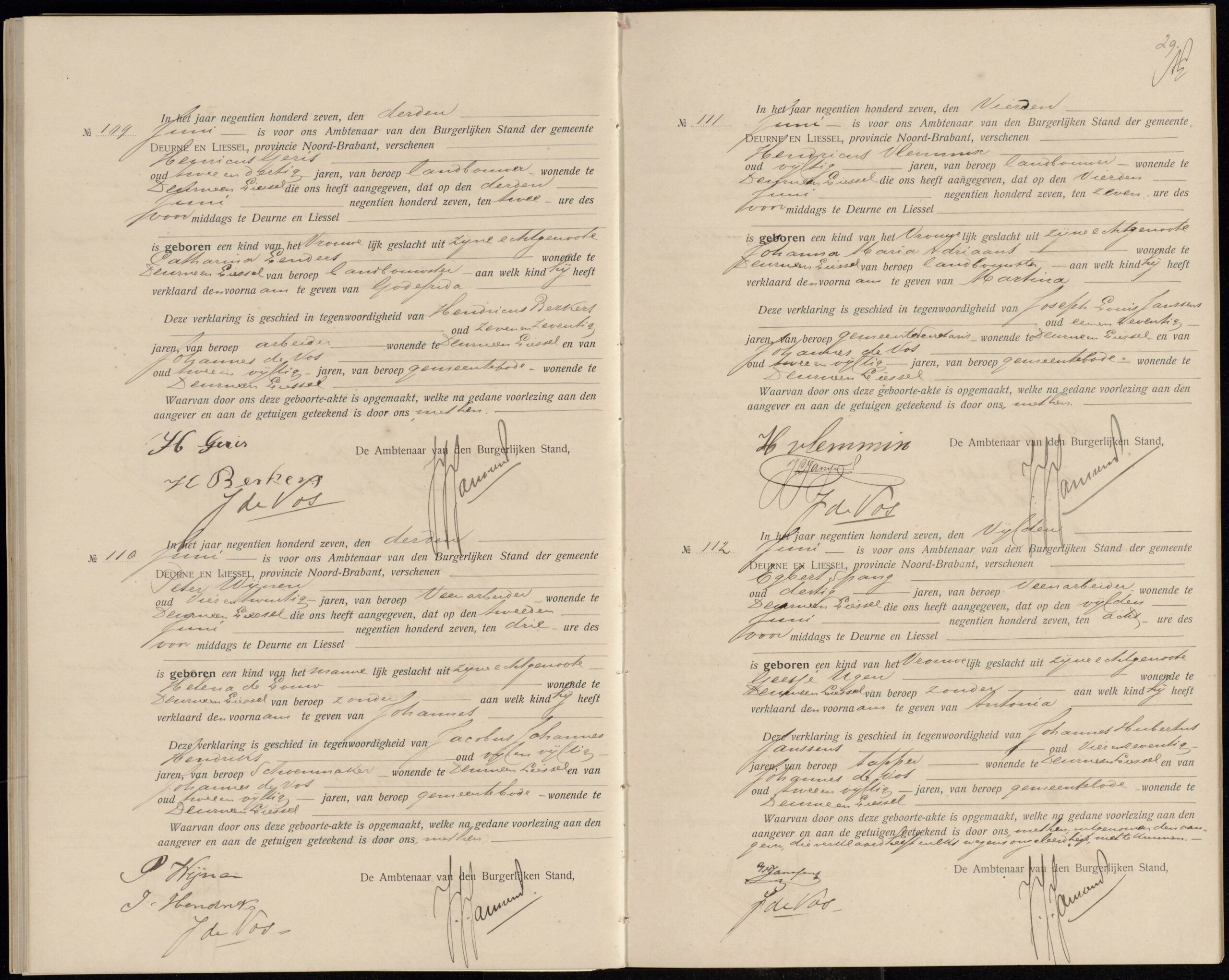 Getuigen: Jacobus Johannes Hendriks, 55 jaar oud, schoenmaker uit Deurne en Liessel en Johannes de Vos, 57 jaar oud, gemeentebode uit Deurne en Liessel.