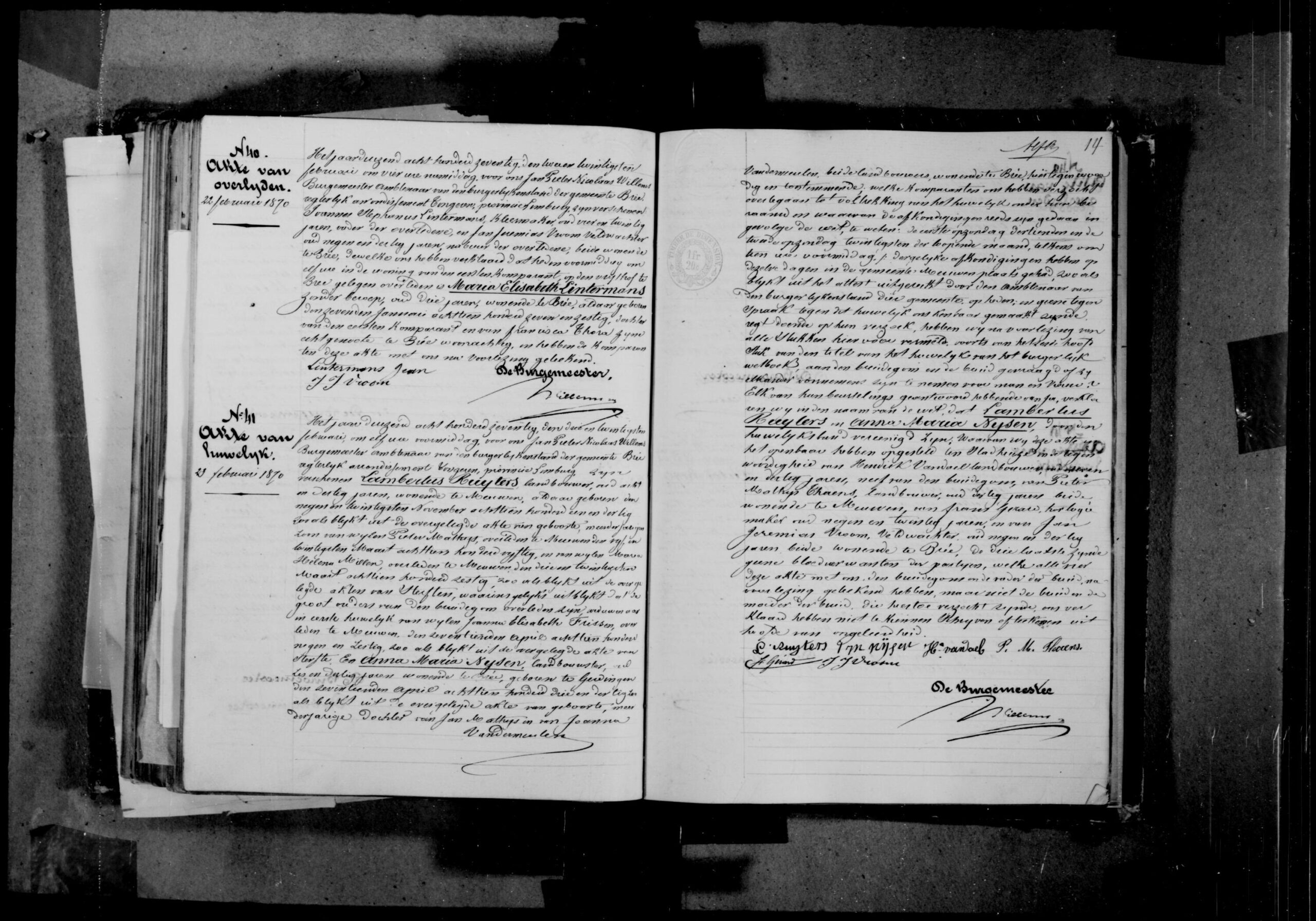 Getuigen: Arnold Boonen, 55 jaar oud, gemeenteontvanger uit Bree en Jan Jeremias Vroom, 46 jaar oud, veldwachter uit Bree.