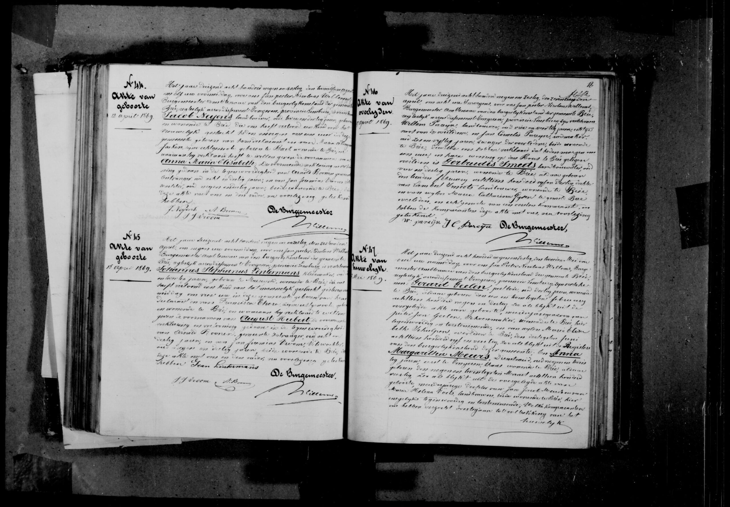 Getuigen: Arnold Boonen, 38 jaar oud, gemeenteontvanger uit Bree en Jan Jeremias Vroom, 39 jaar oud, veldwachter uit Bree.
