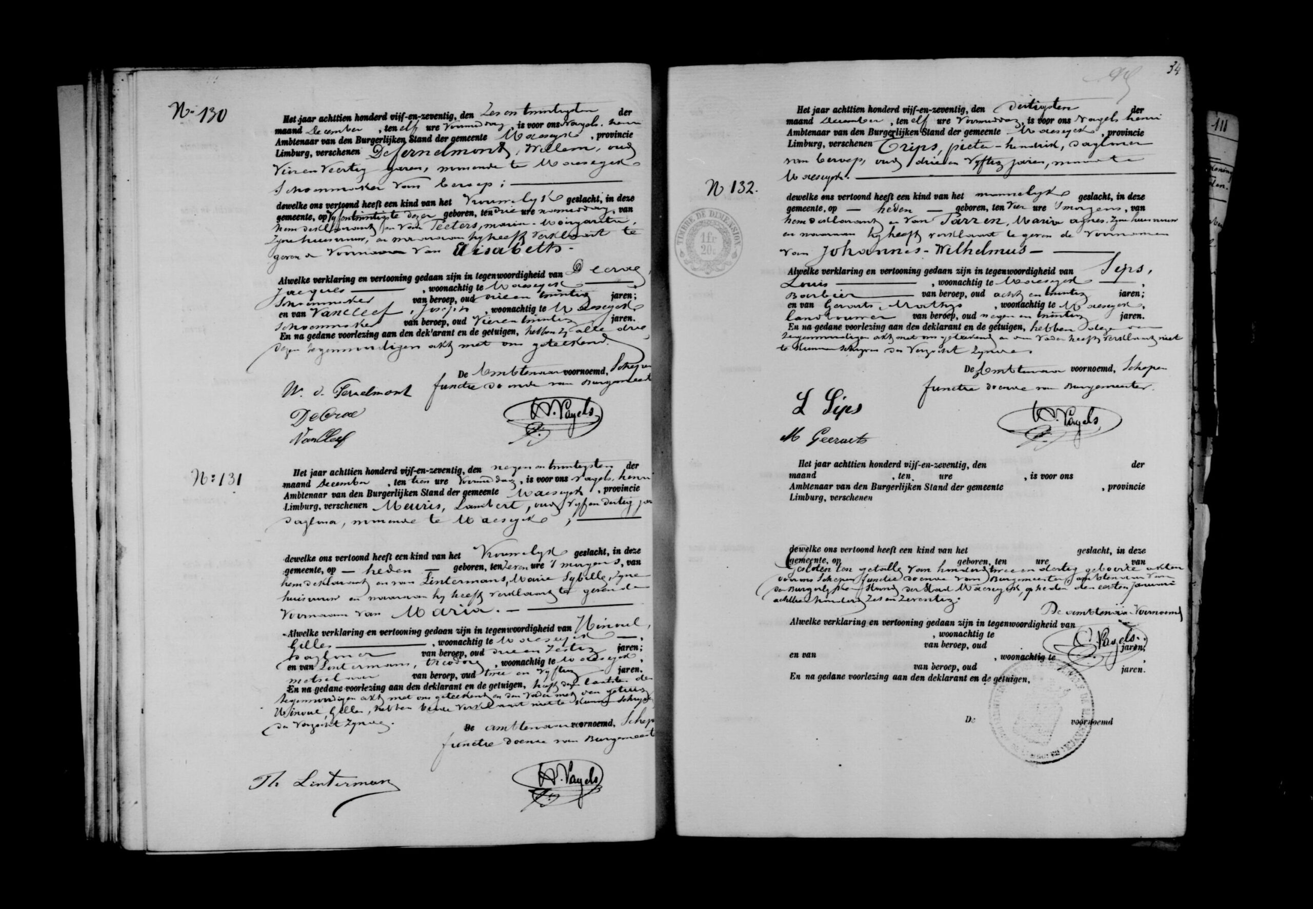 Getuigen: Gilles Hinoul, 63 jaar oud, dagloner uit Maaseik en Theodoor Lintermans, 52 jaar oud, metselaar uit Maaseik.