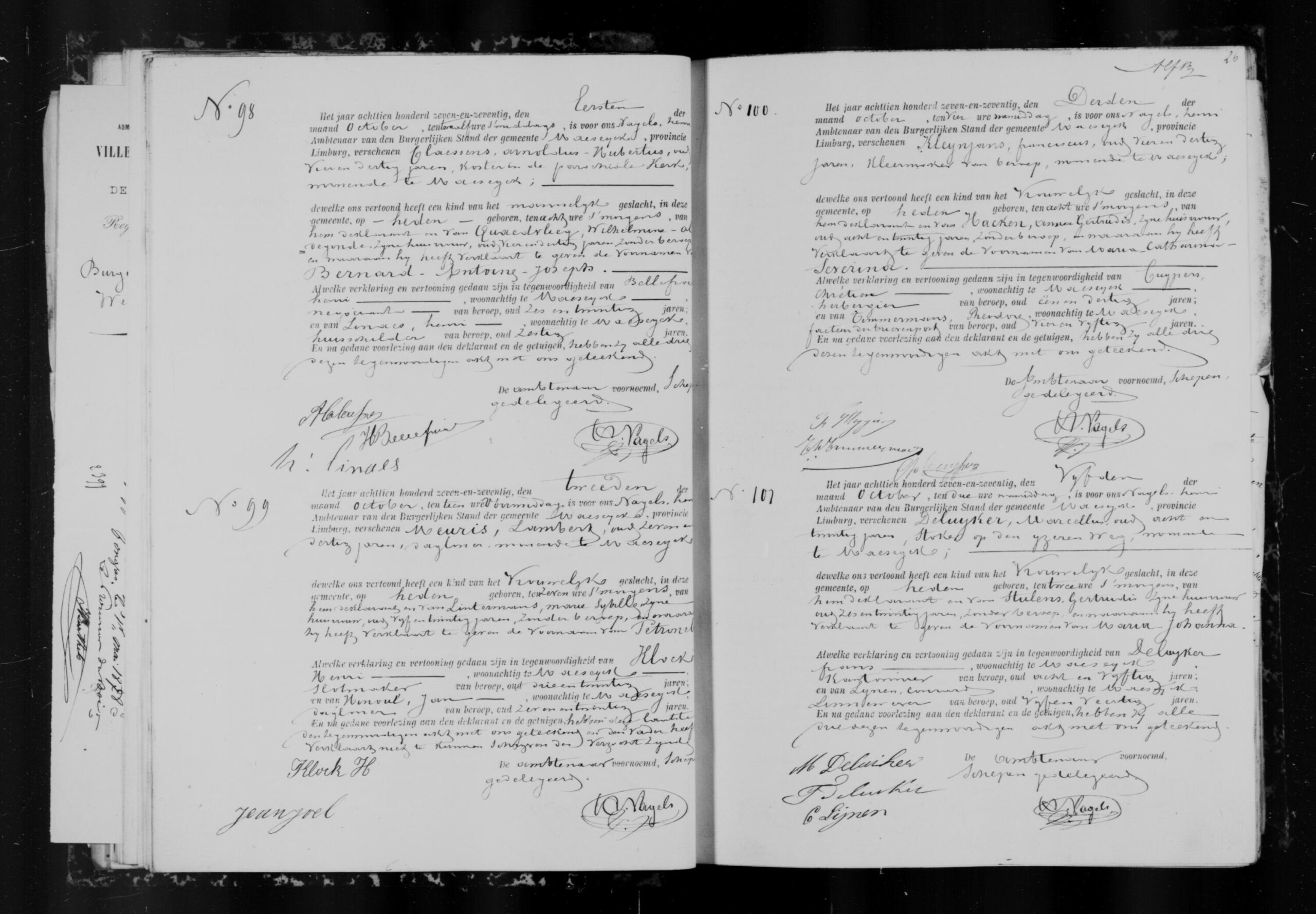 Getuigen: Henri Klock, 23 jaar oud, slotmaker uit Maaseik en Jan Hinoul, 26 jaar oud, dagloner uit Maaseik.