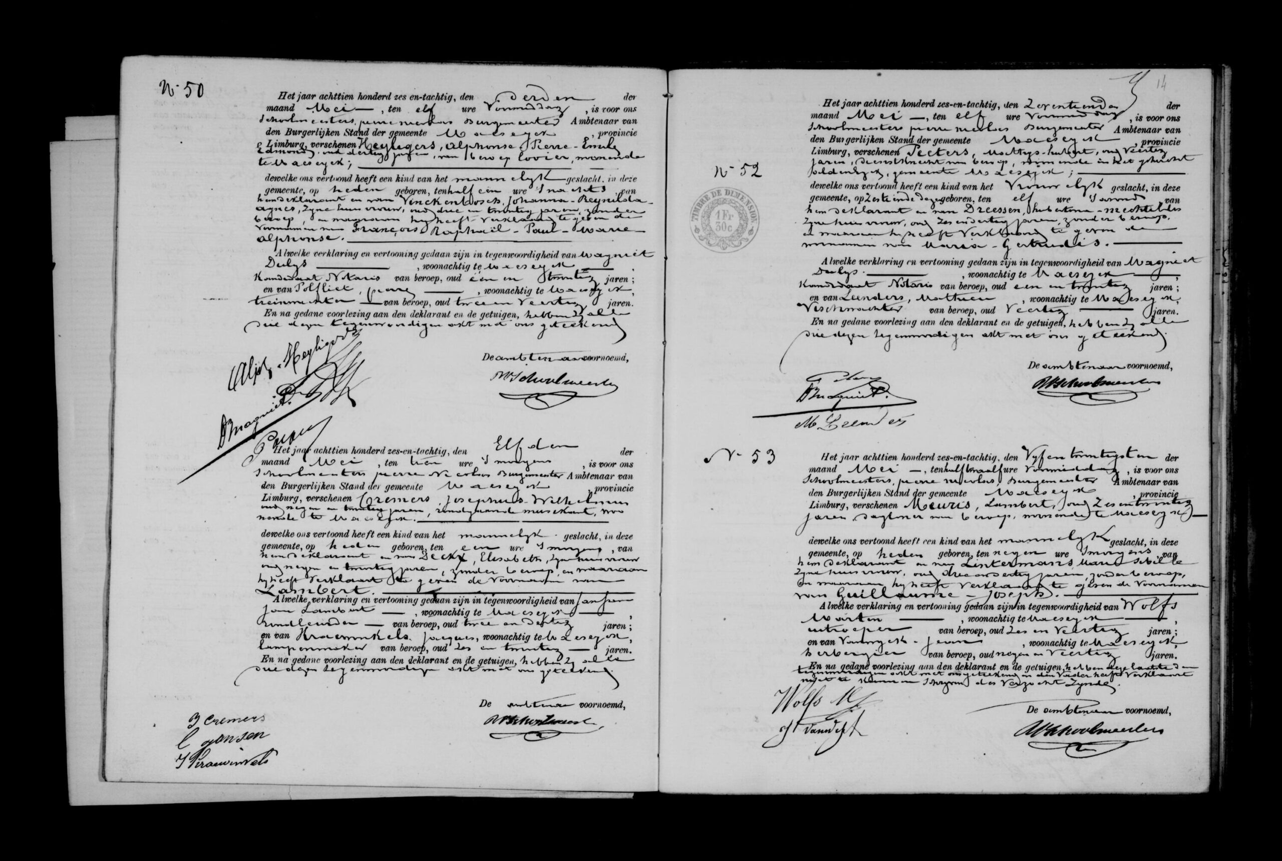 Getuigen: Martin Wolfs, 46 jaar oud, uitroeper en Jean Van Wijck, 49 jaar oud, herbergier.