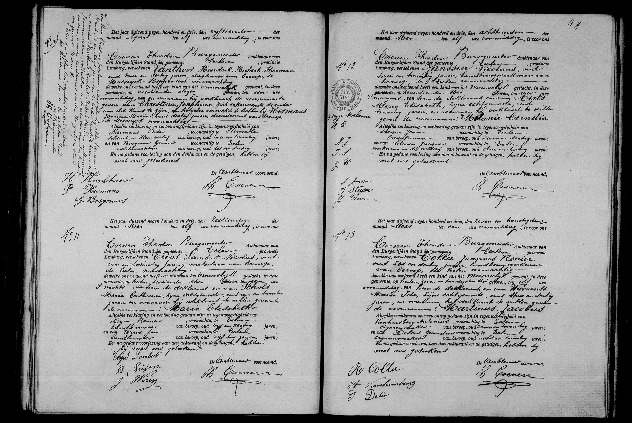 Getuigen: Renier Leyen, 65 jaar oud, landbouwer uit Elen en Jan Wirix, 50 jaar oud, landbouwer uit Elen.