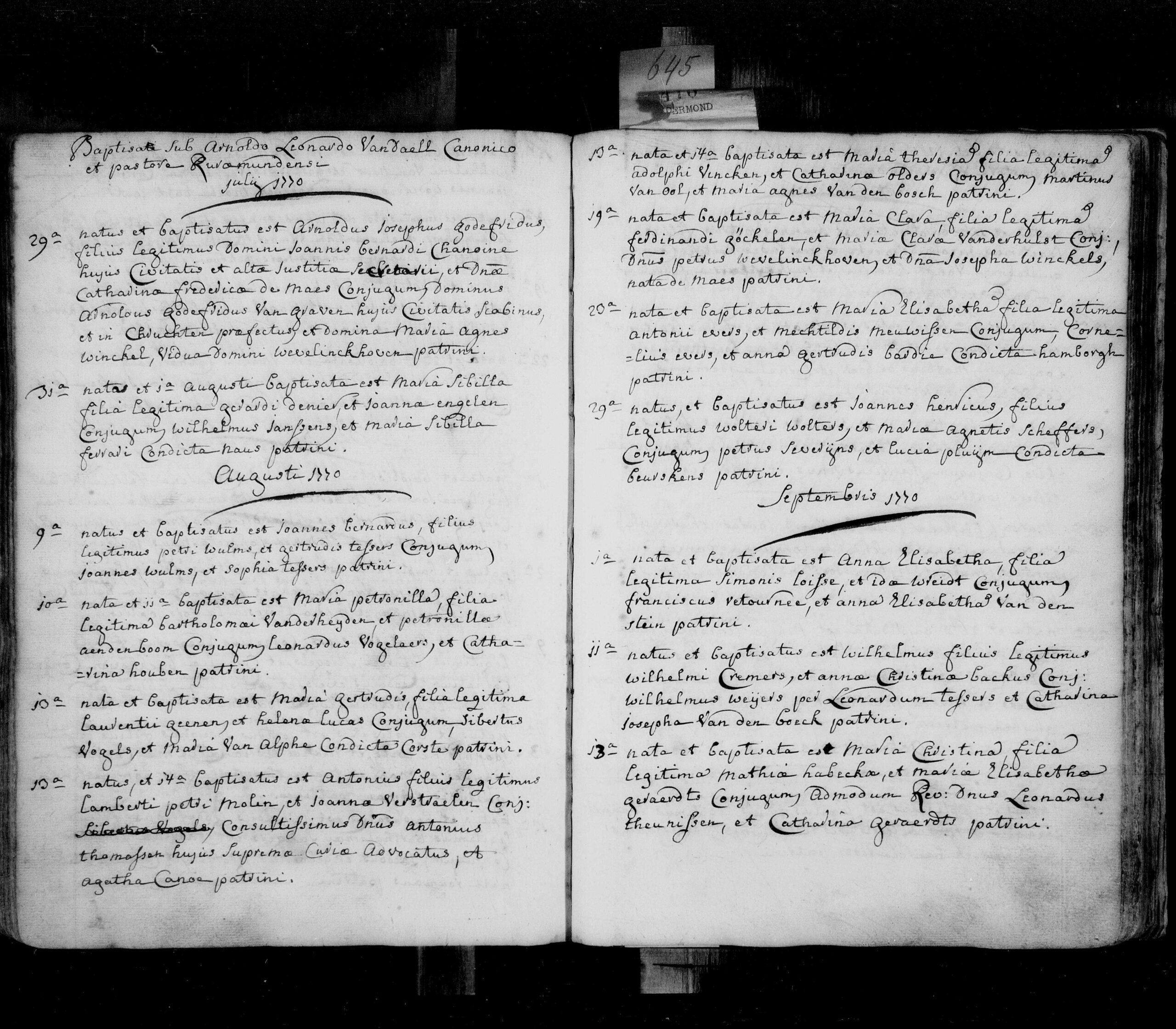 Doopsel: 20 augustus 1770 in Roermond