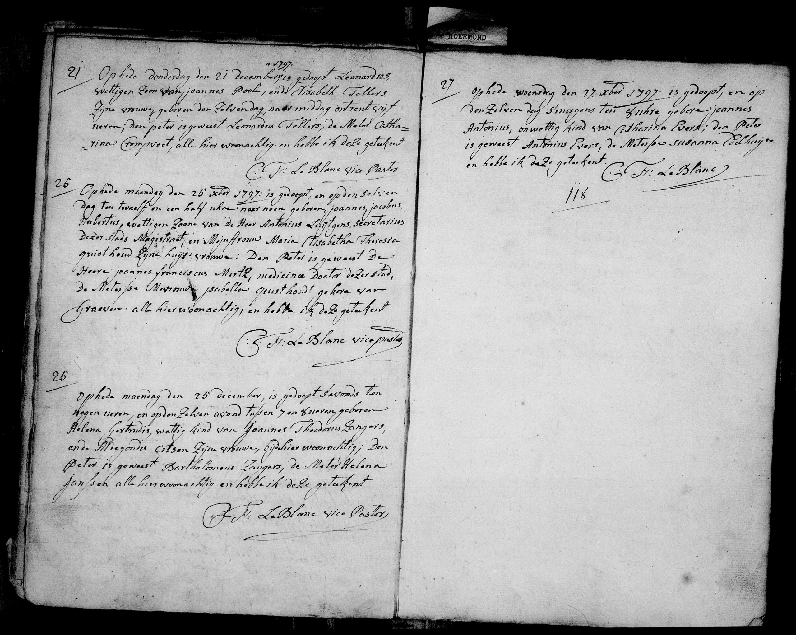 Getuigen: Anthoine Evers, 41 jaar oud, zakdrager uit Roermond en Susanne Edelhuysen, 24 jaar oud, wolspinster uit Roermond.