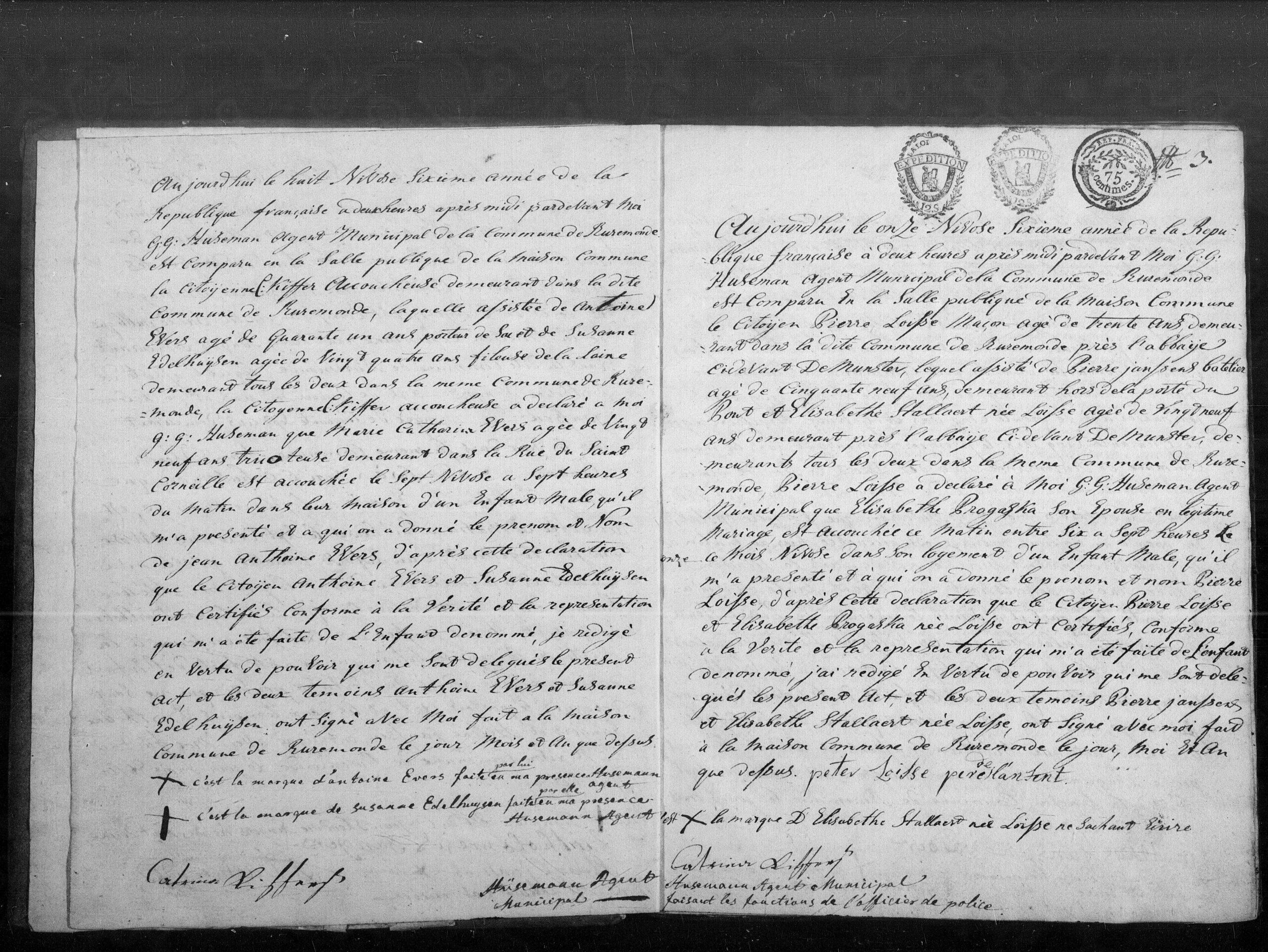 De moeder is volgens de Franse akte breister en woont in de Sint-Corneliusstraat Roermond