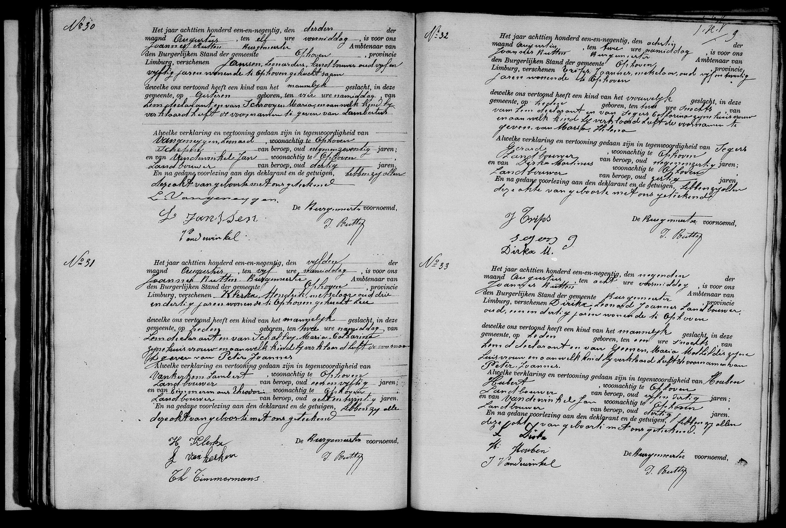 Getuigen: Gerard Segers, 69 jaar oud, landbouwer uit Ophoven en Martinus Dirkx, 60 jaar oud, landbouwer uit Ophoven.