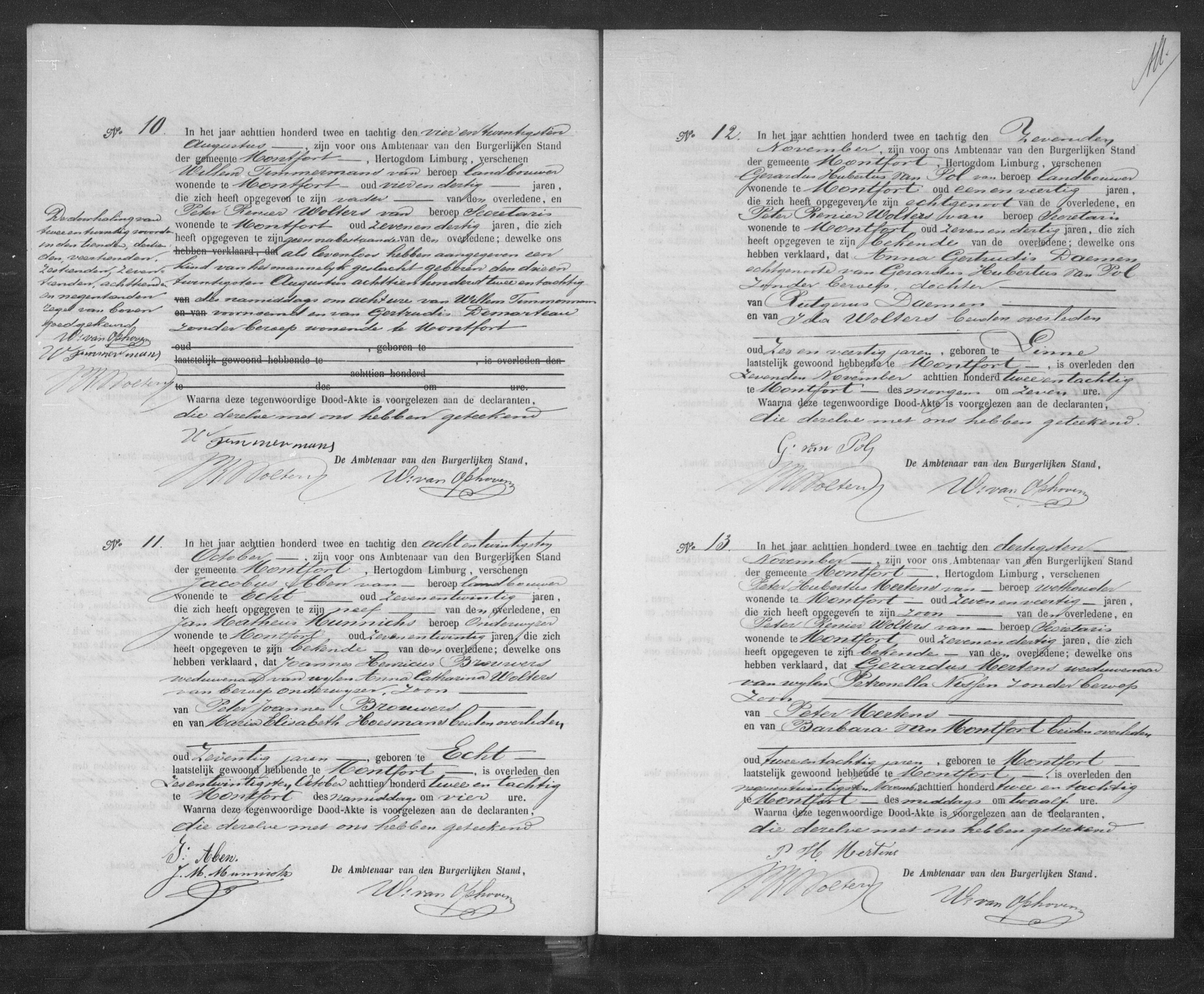 Aangevers: Peter Hubertus Mertens, 47 jaar oud, wethouder uit Montfort, zoon van de overledene en Peter Renier Wolters, 37 jaar oud, secretaris uit Montfort, bekende.